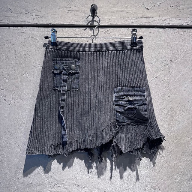 BAD BLOOD バッドブラッド DAMAGE KNIT SKIRT ニットスカート UNDT0901 グレー size:2【代官山A11】