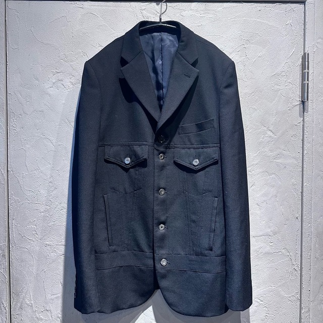 COMME des GARCONS HOMME DEUX コムデギャルソンオムドゥ 24AW Wool Gabardine Docking Jacket ドッキングジャケット DN-J031-051-1-3 ブラック size:M【代官山A11】