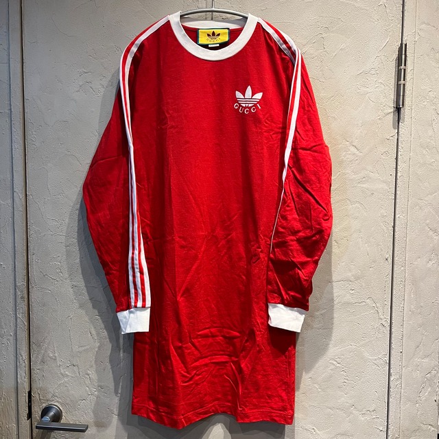 GUCCI × adidas グッチ×アディダス ストライプ プリントロゴ 長袖ワンピース 693537 XJEBS sizeM レッド 【代官山10】