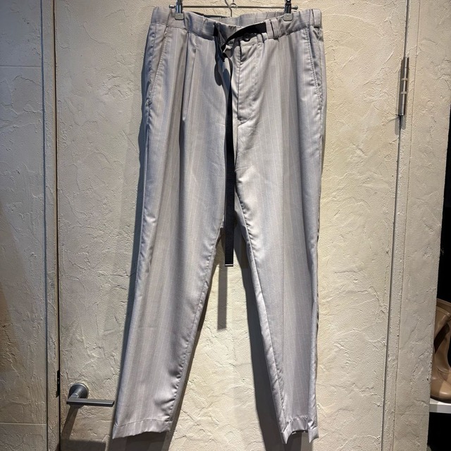 UJOH ウジョー Tape-Belt 1 Tuck Pants ストライプスラックス M781-P54-102 グレー size:2【代官山A10】