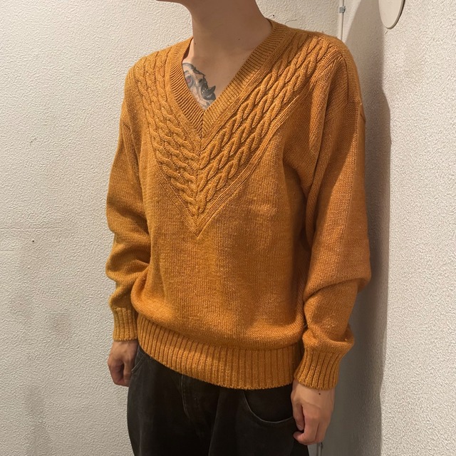 表参道店の商品です。 Christian Dior MONSIEUR クリスチャンディオールムッシュ OLD ニット 厚手 Vネック【表参道t09】 ★商品について★ 深めのVネックニットです ★コンディション★ 全体的に毛羽たちはございますが大きなダメージや汚れ等はございません 古着特有の臭いがします ★カラー★ マスタード ★サイズ★ 表記サイズ:L 平置き実寸サイズ 着丈:約67cm 肩幅:約62cm 身幅:約58cm 袖丈(肩ライン~袖口):約55cm ★素材★ 毛85 麻15