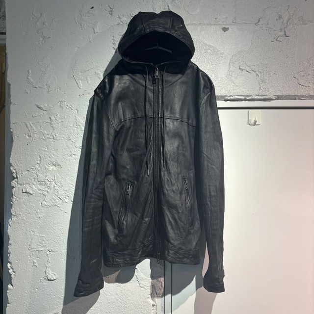 GIORGIO BRATO ジョルジオブラット Lamb Leather Hooded Jacket レザー パーカー GU20F9296V ブラック size:46【表参道A10】