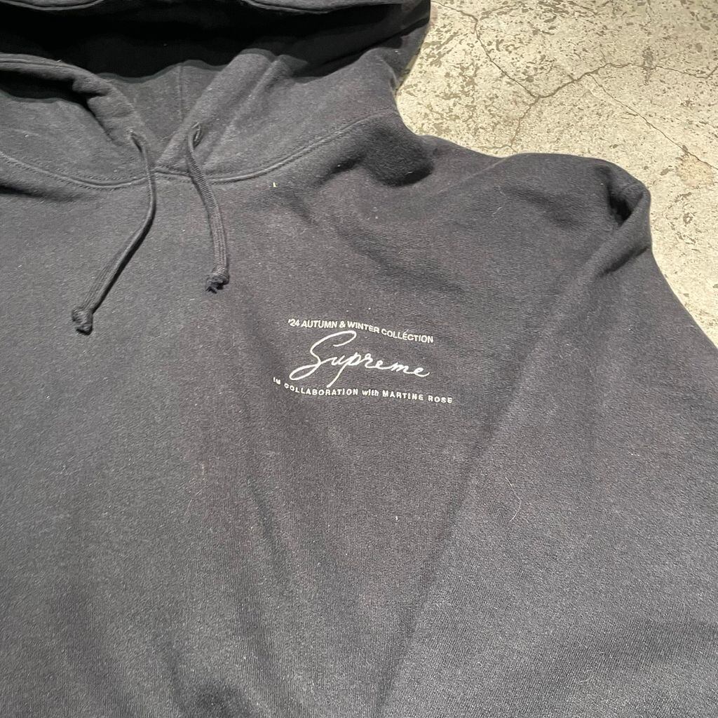 Supreme×Martine rose24AWのプルオーバースウェットパーカーになります。 右胸とバックにロゴグラフィックが刺繍されております。