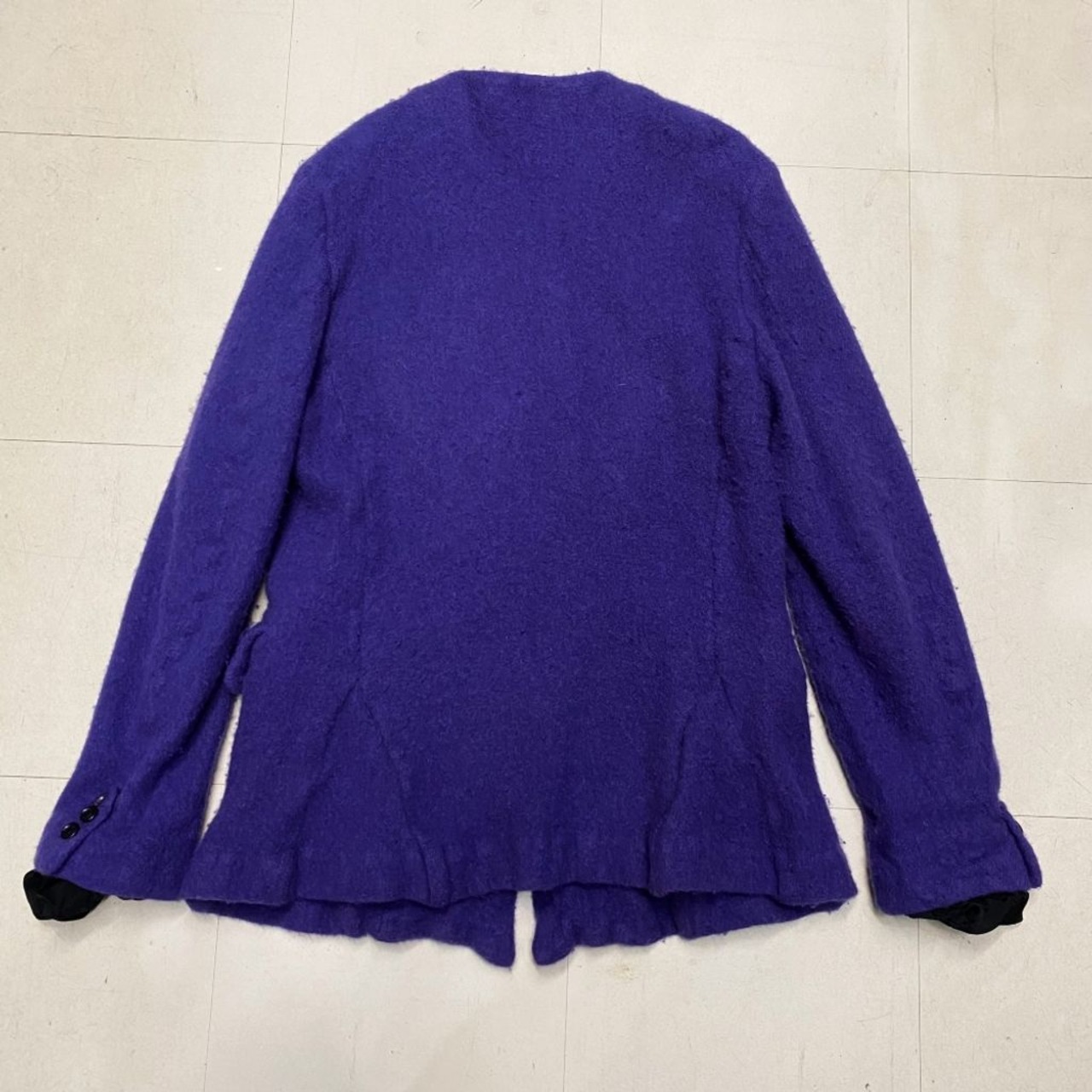 22AW ウール縮絨 ノーカラージャケットになります。 袖口部分の裏地が、表地の縮絨加工で縮むことで露出しています。