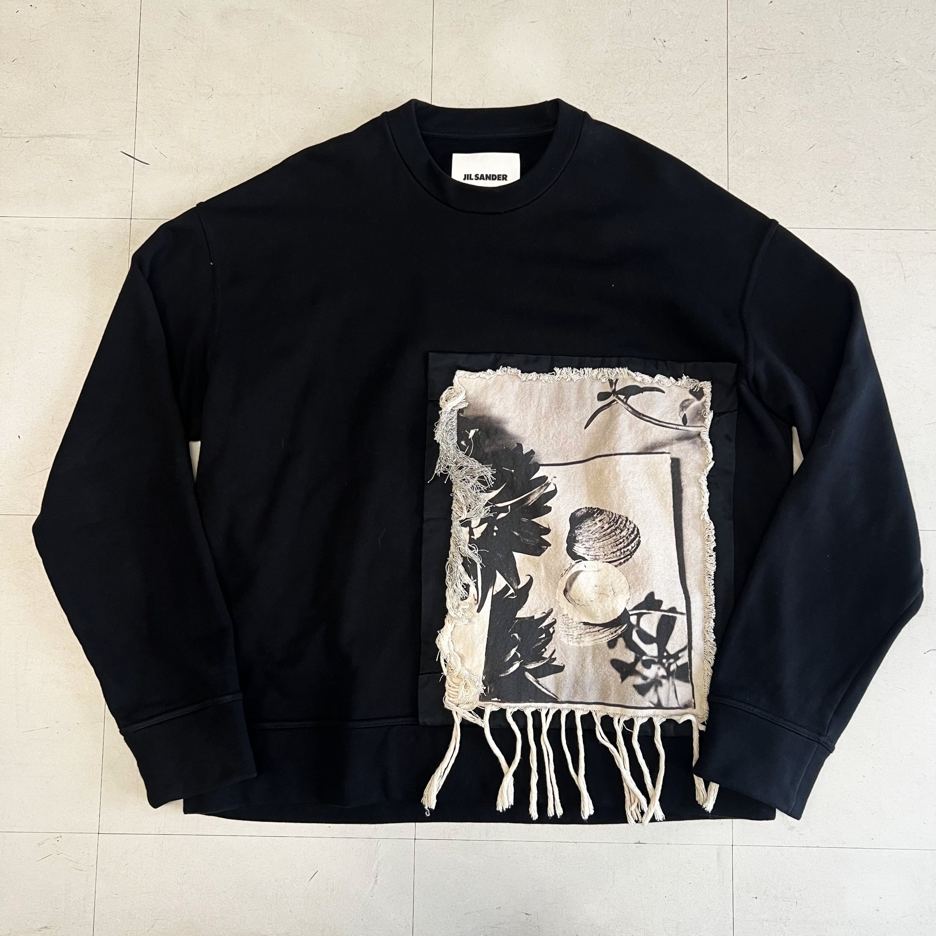 JIL SANDER ジルサンダー 21AW SWEATSHIRT CN LS フリンジパッチ スウェット ブラック size-M JSMT707058【中目黒R04】