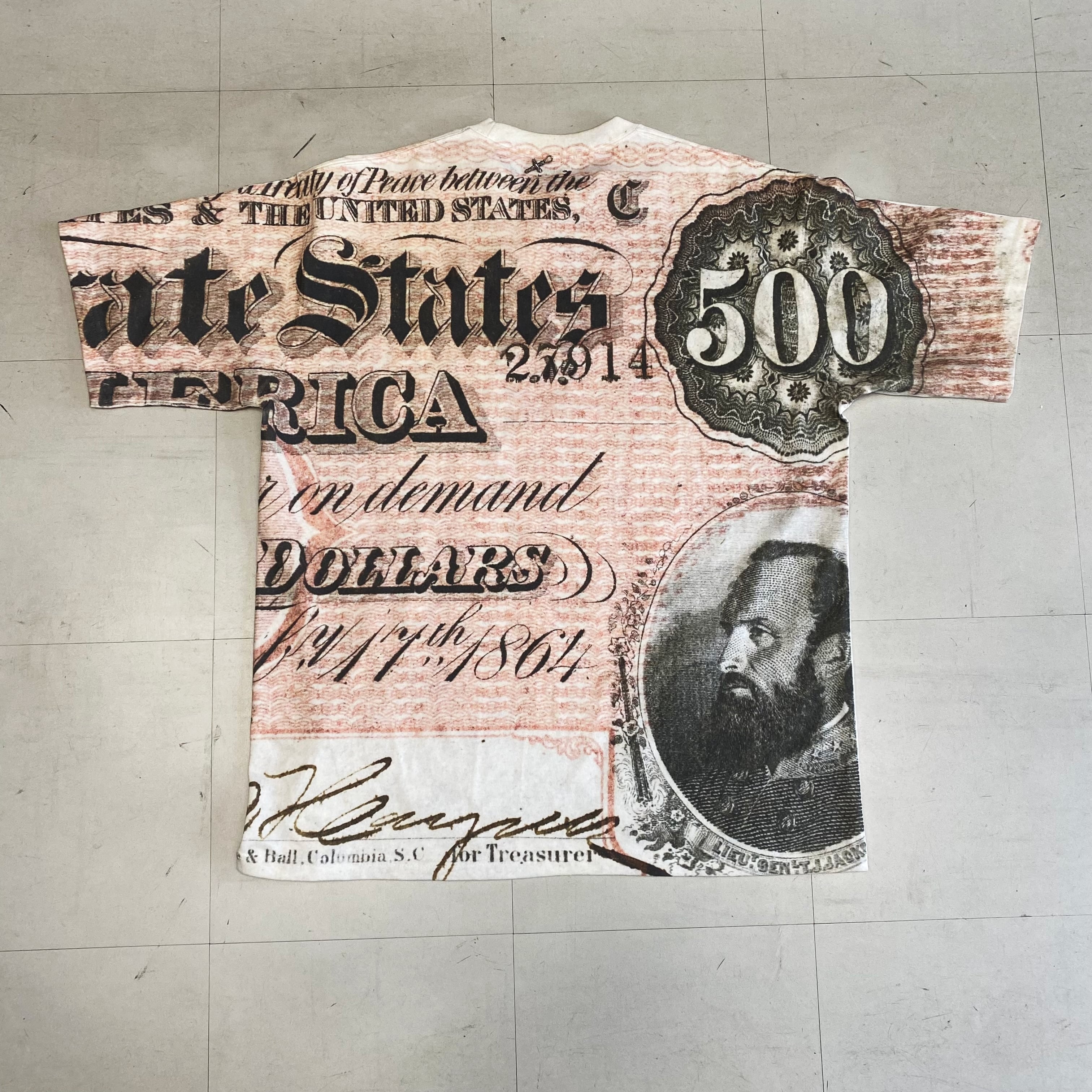 全面にプリントが施されたTシャツ。 しっかりとした肉厚なコットン生地を使用。首後ろには装飾パーツを配置。