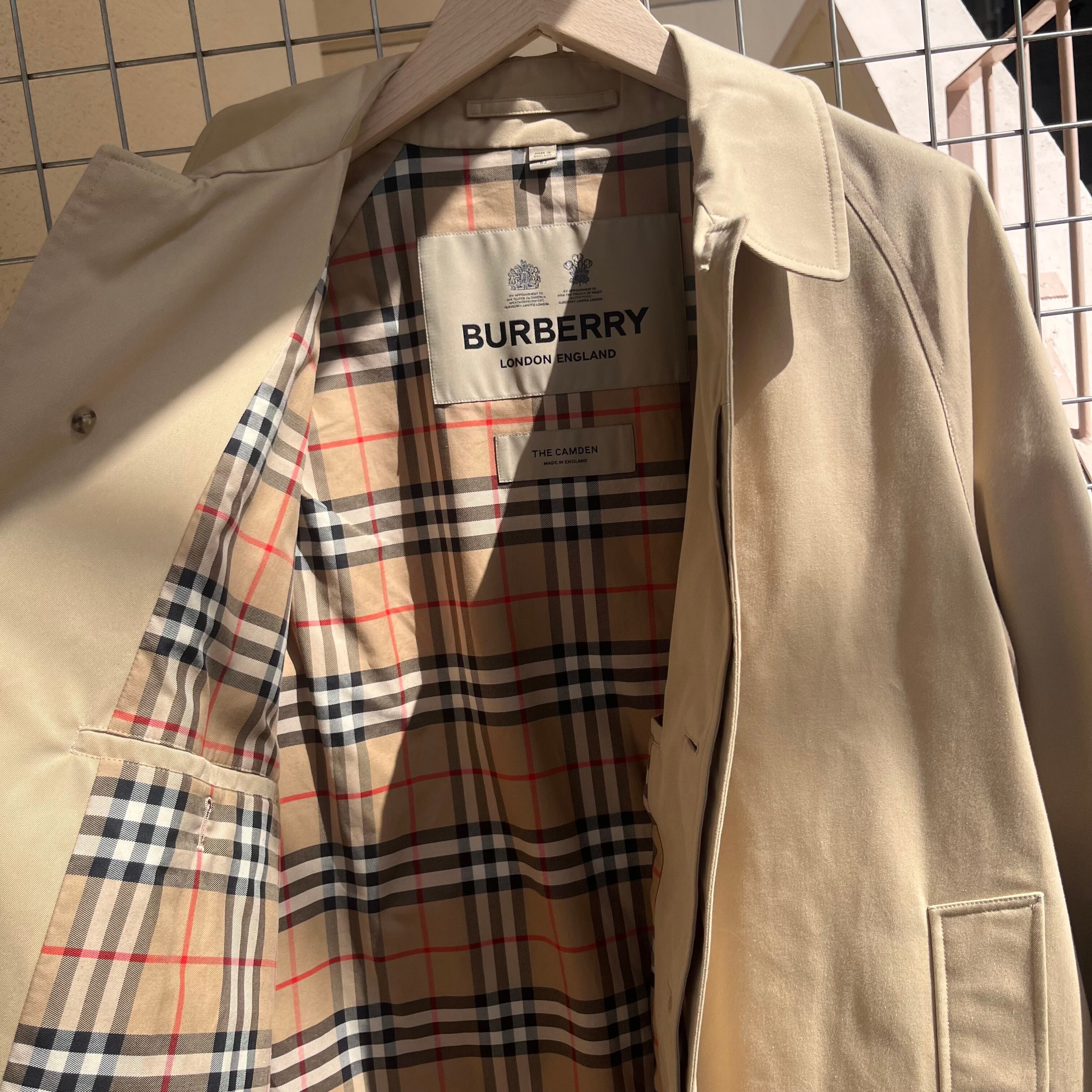 バーバリーのアウターの中でも人気の高いTHE CAMDEN。裏地のバーバリーチェックや色味がブランドらしいアイテムでございます。