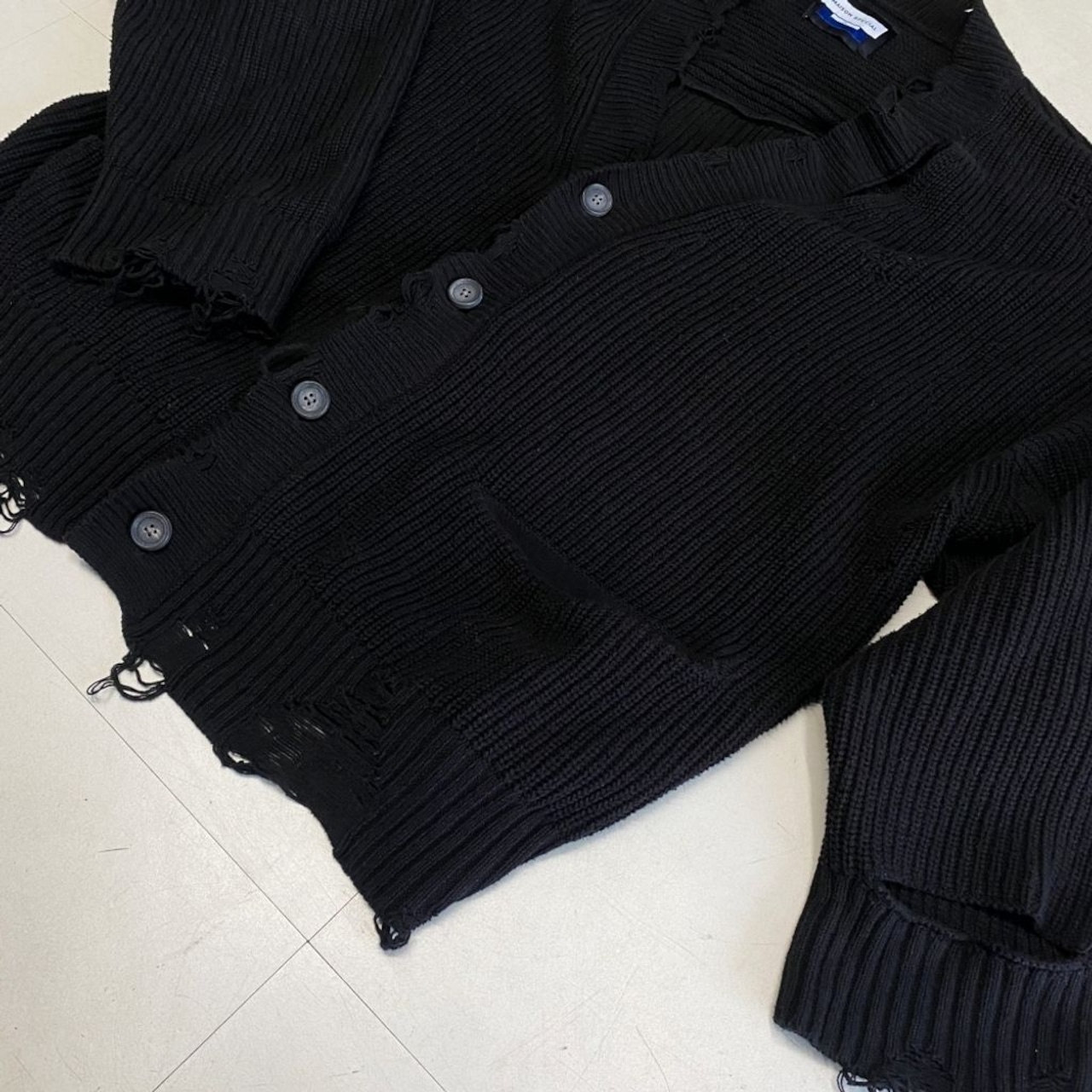 ダメージ加工の施されたオーバーサイズのカーディガンです。
