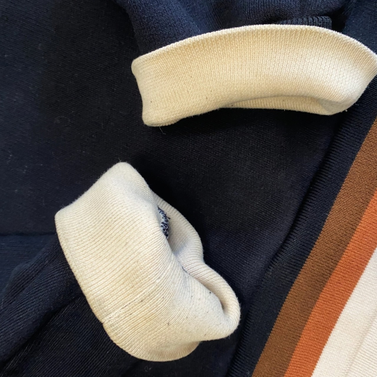 裾や袖口内側部分に薄汚れがございますが、着用時目立った汚れやダメージはございません。