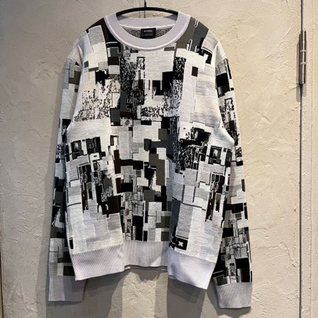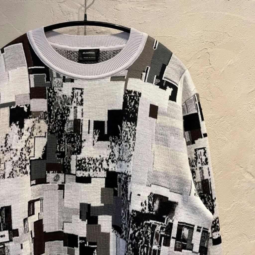 JIL SANDER ジルサンダー 17AW ジオメトリック 総柄ニット グレー系 size50 JSML751071【代官山05】