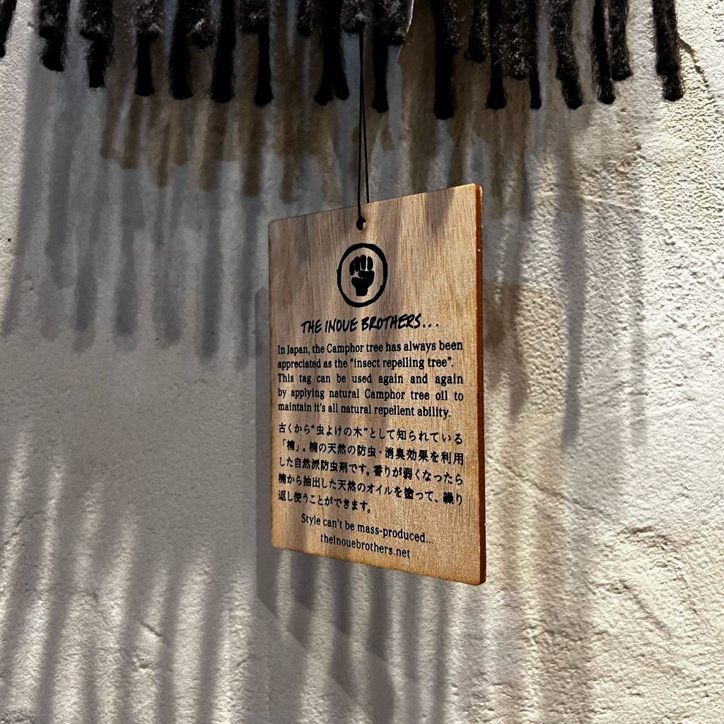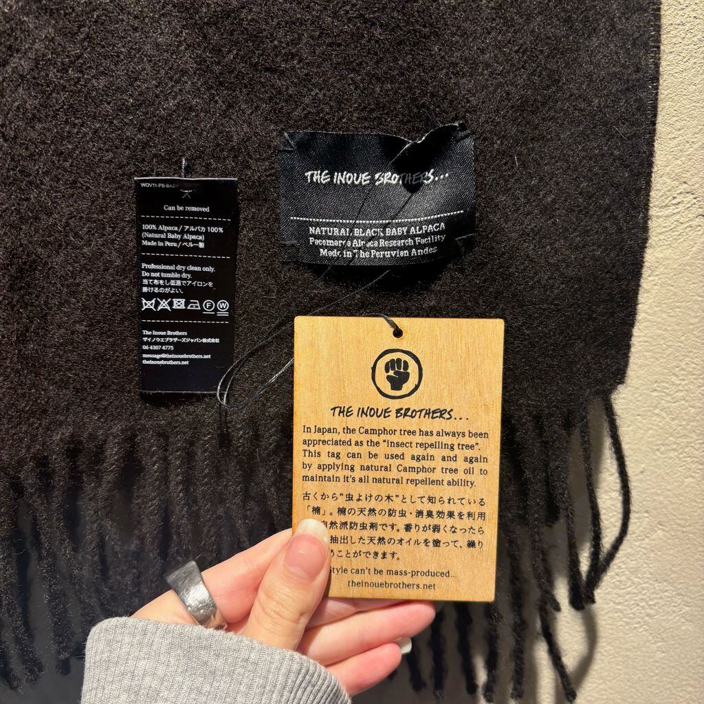 THEINOUEBROTHERSのマフラーになります。楠の天然の防虫・消臭効果を利用した自然派防虫剤を使用しています。
