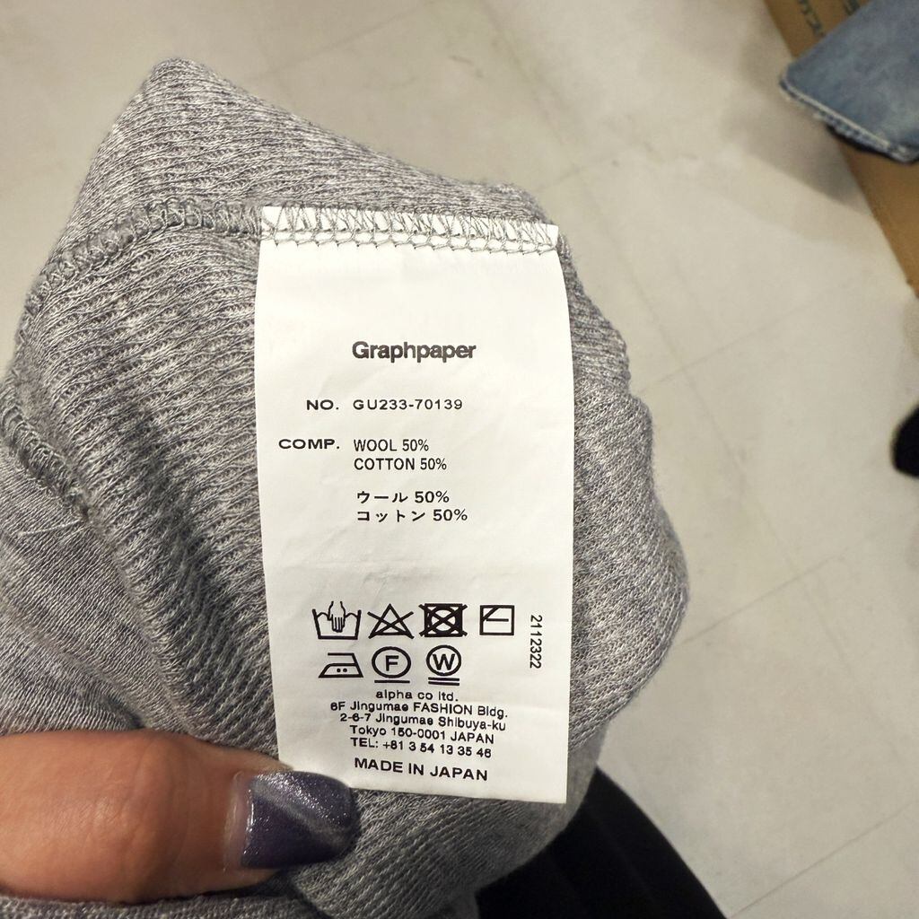 Graphpaper グラフペーパー 23AW Wool Honeycomb Mock Neck モックネックロングTシャツ GU233-70139 グレー size:2【中目黒A05】