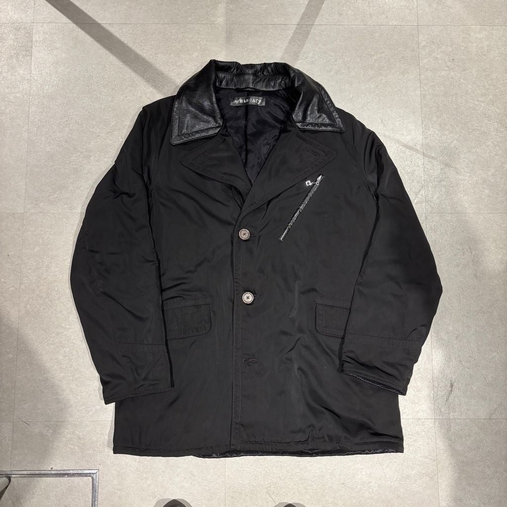 レザーの襟が上品さを感じさせるコートです。
