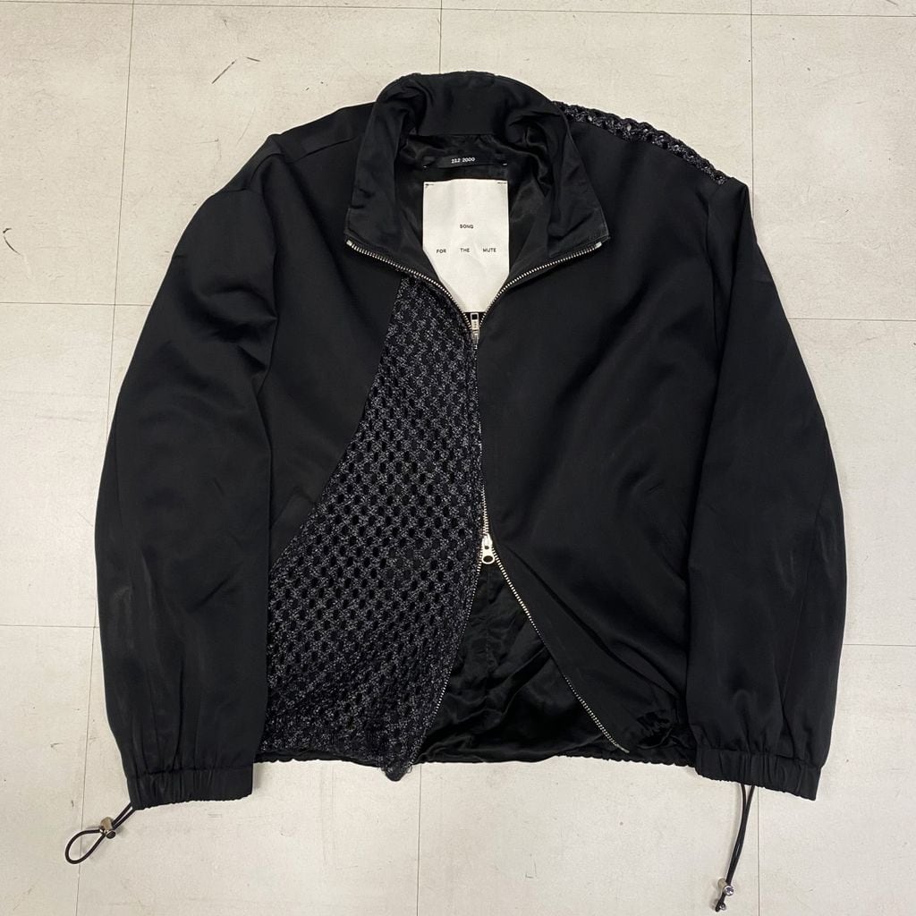 アセテート混サテンとナイロン混メッシュのジャケット。