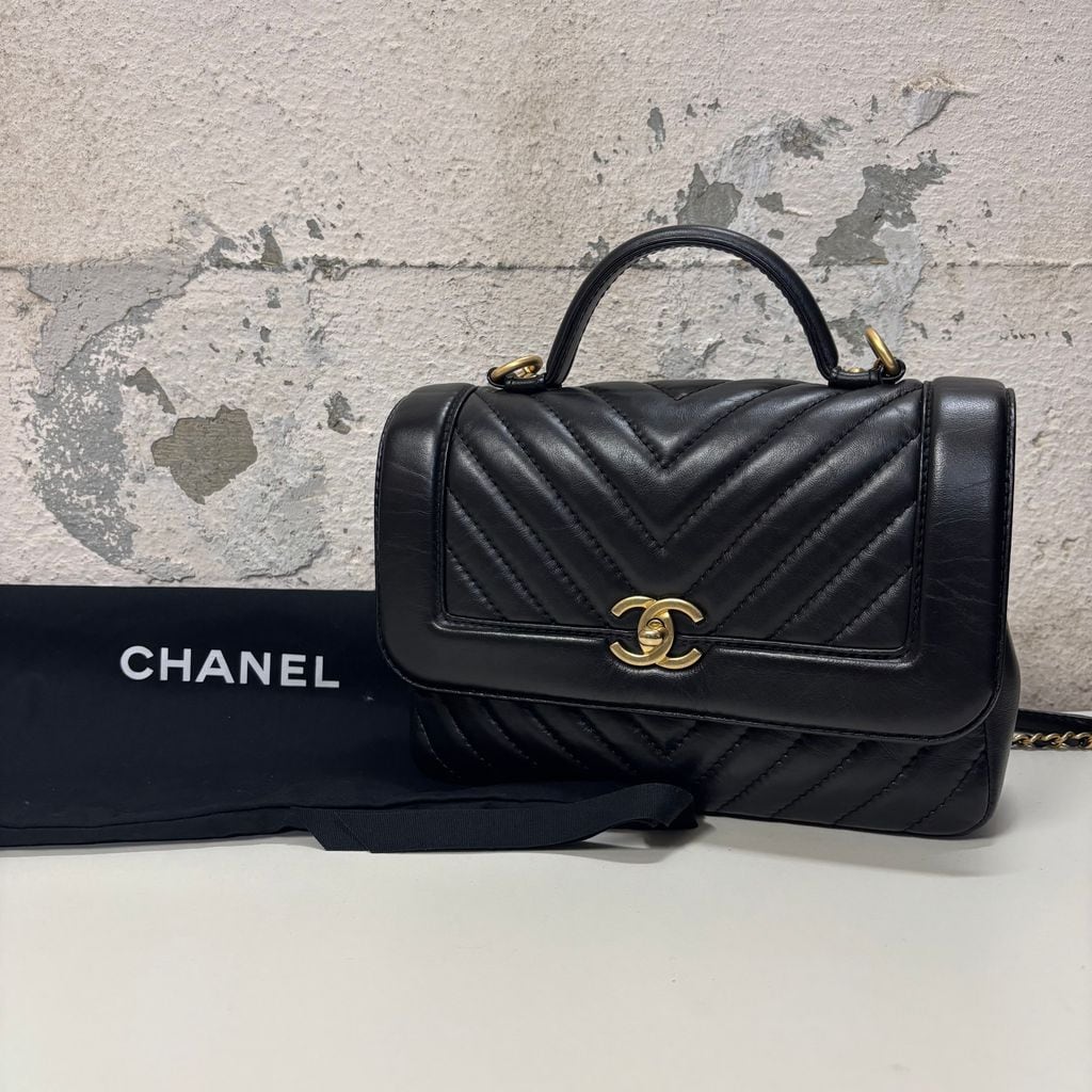 CHANEL シャネル Vステッチ 2wayショルダーバッグ ブラック レザー【代官山A05】