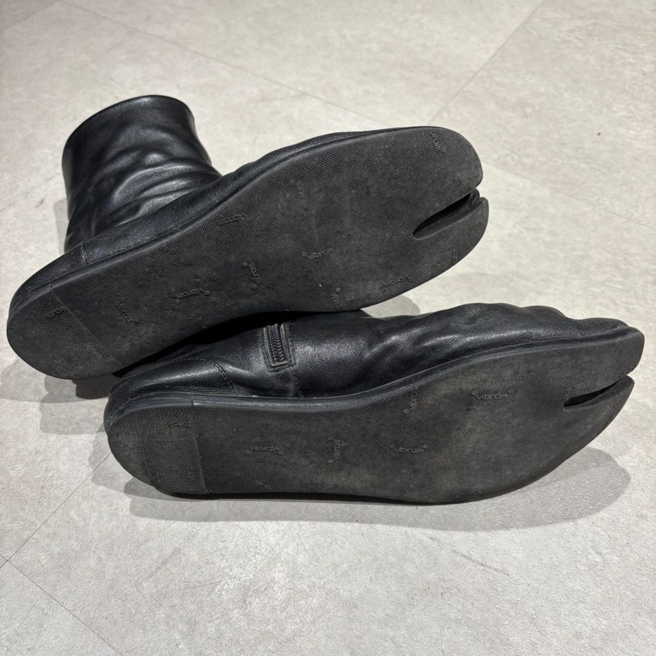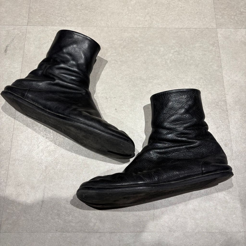 メゾンマルジェラ定番アイテムのヒールのないフラットな形の足袋ブーツになります。