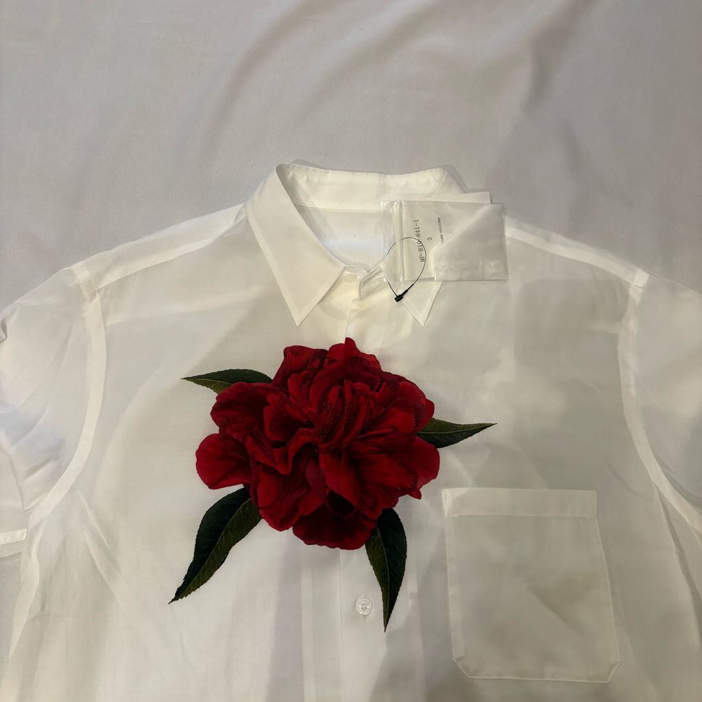Y's for men ワイズフォーメン 25SS REGULAR COLLAR SHIRT WITH RED FLOWER PRINT シャツ HP-B10-841 ホワイト size:3【代官山A07】 | ブランド古着Brooch