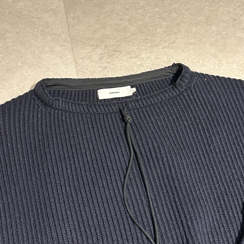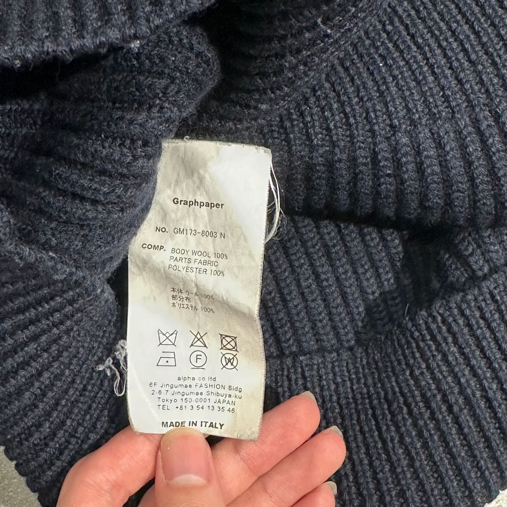 グラフペーパーのネックのデザインが特徴のニットになります。