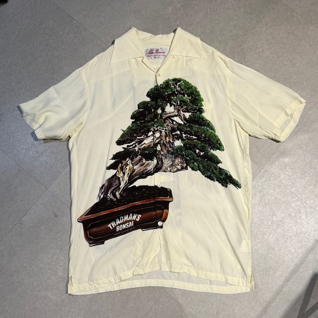TRADMAN'S BONSAI × AlohaBlossom トラッドマンズ アロハブロッサム 盆栽プリント アロハシャツ アイボリー系 size:42【表参道A07】