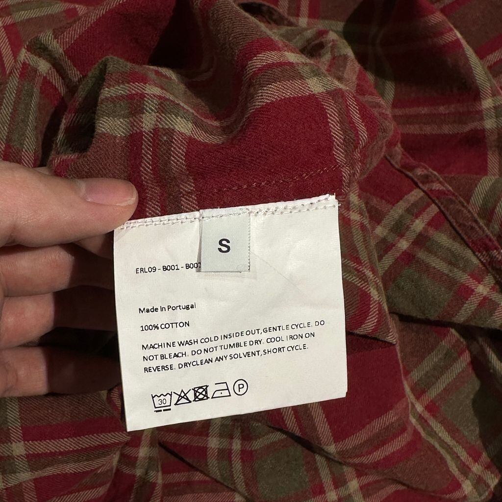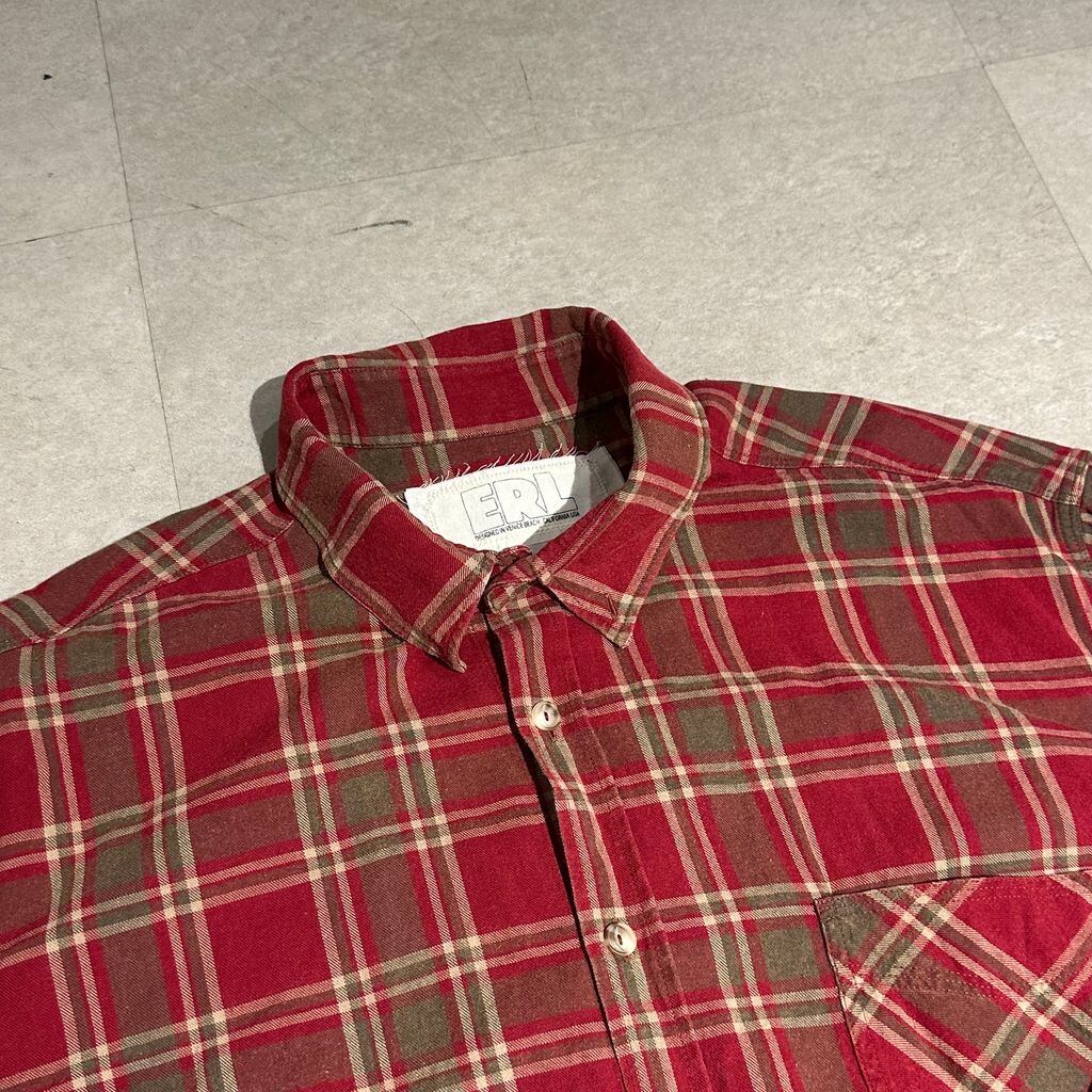 ERL イーアールエル 24AW PLAID Long Sleeve Shirt 長袖チャックシャツ ERL09-B001-B007 レッド系 size:S【表参道A07】