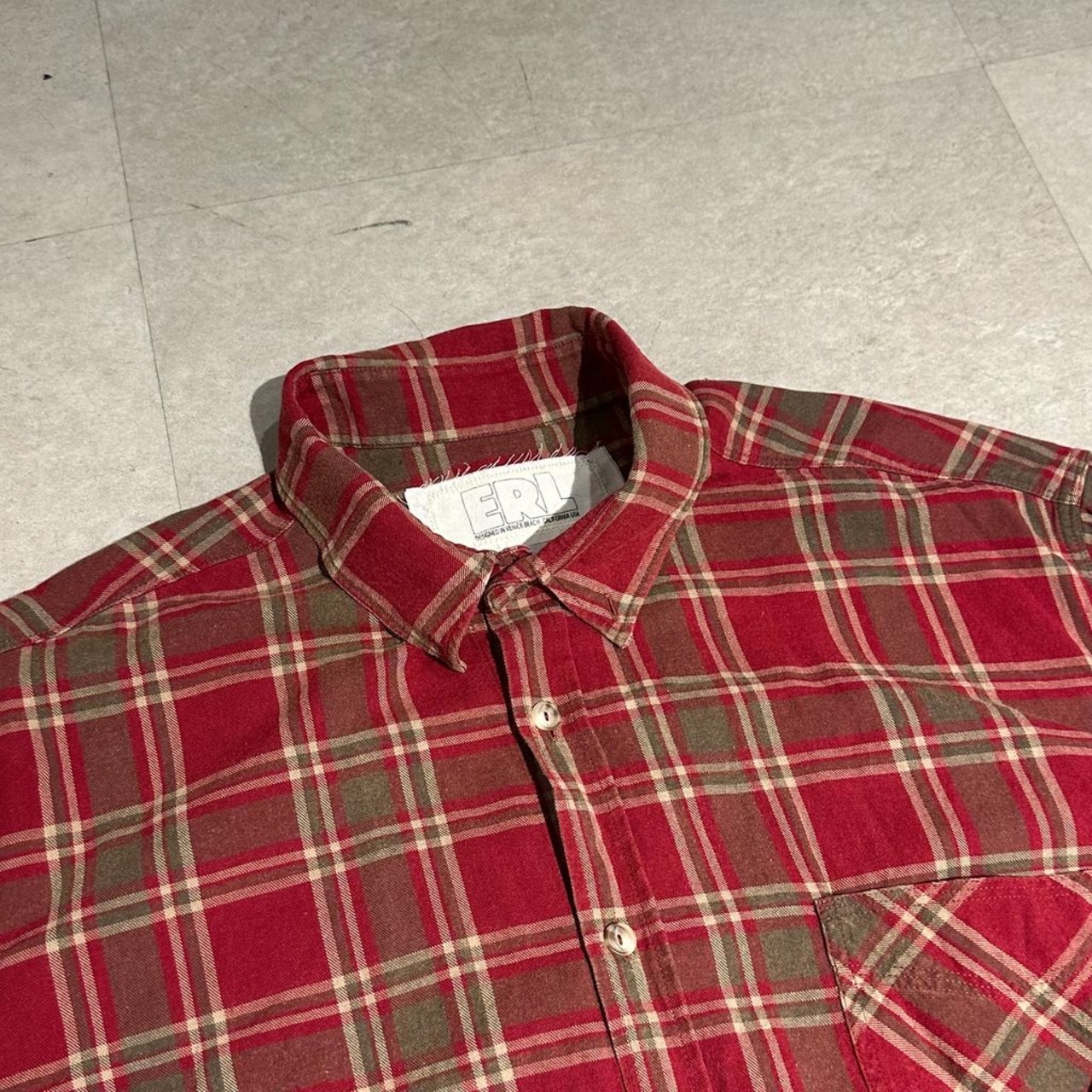 イーアールエルのチェックシャツになります。