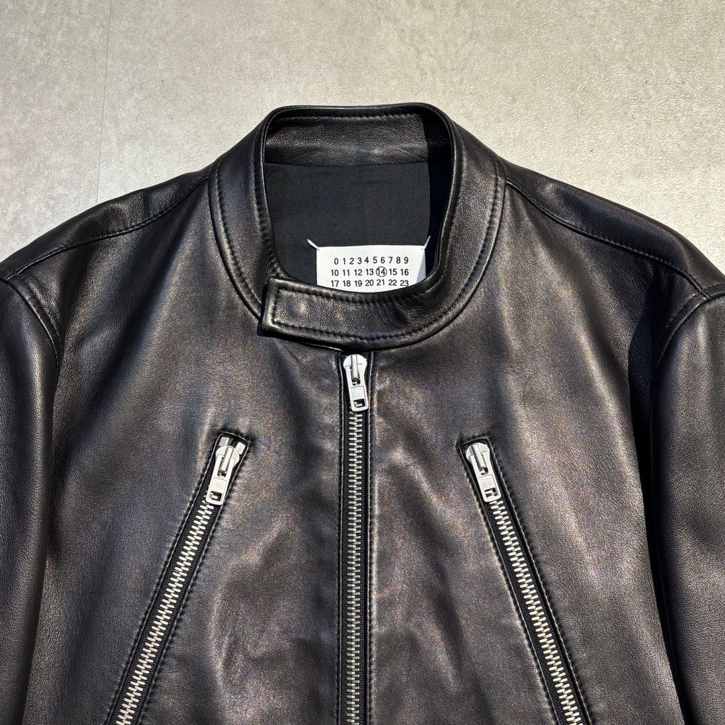 Maison Margiela メゾンマルジェラ 22AW 5Zip Leather Jacket 八の字ライダースジャケット S50AM0489 ブラック レザー size:44【表参道A07】