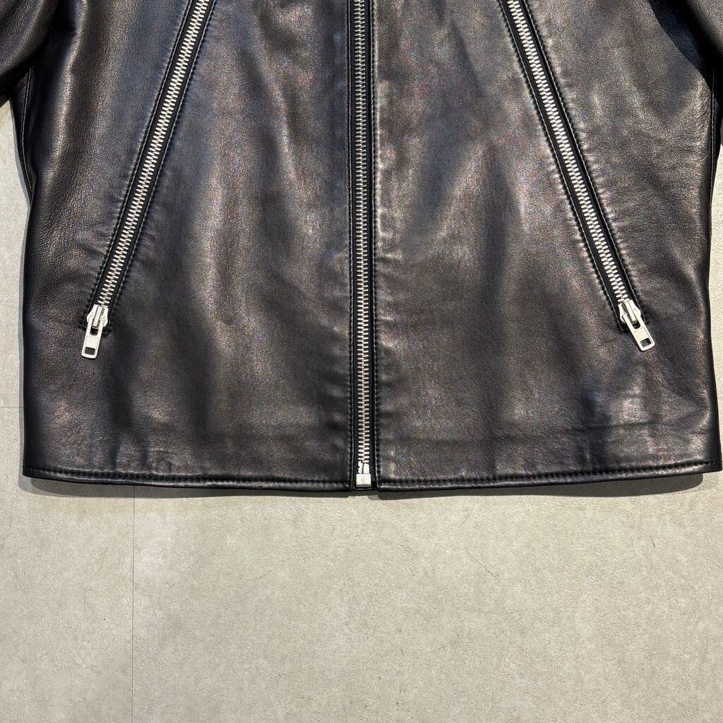 滑らかで程よい光沢感を持ったカーフレザーを使用しており、柔らかい着心地のレザージャケットとなっております。