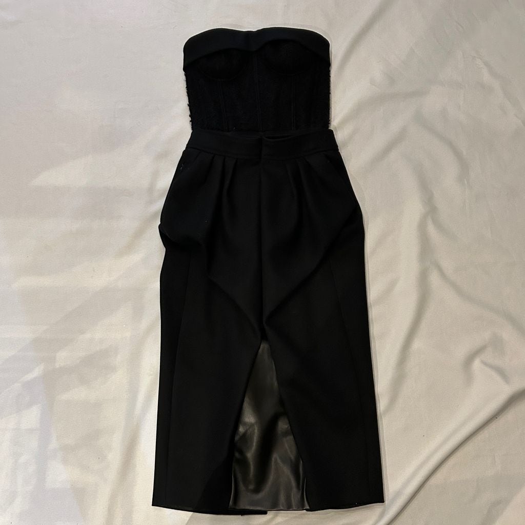 Maison Margiela メゾンマルジェラ 22AW ヘリンボーン切替 ベアトップワンピース S51CU0323 ブラック系 size:40【代官山A07】