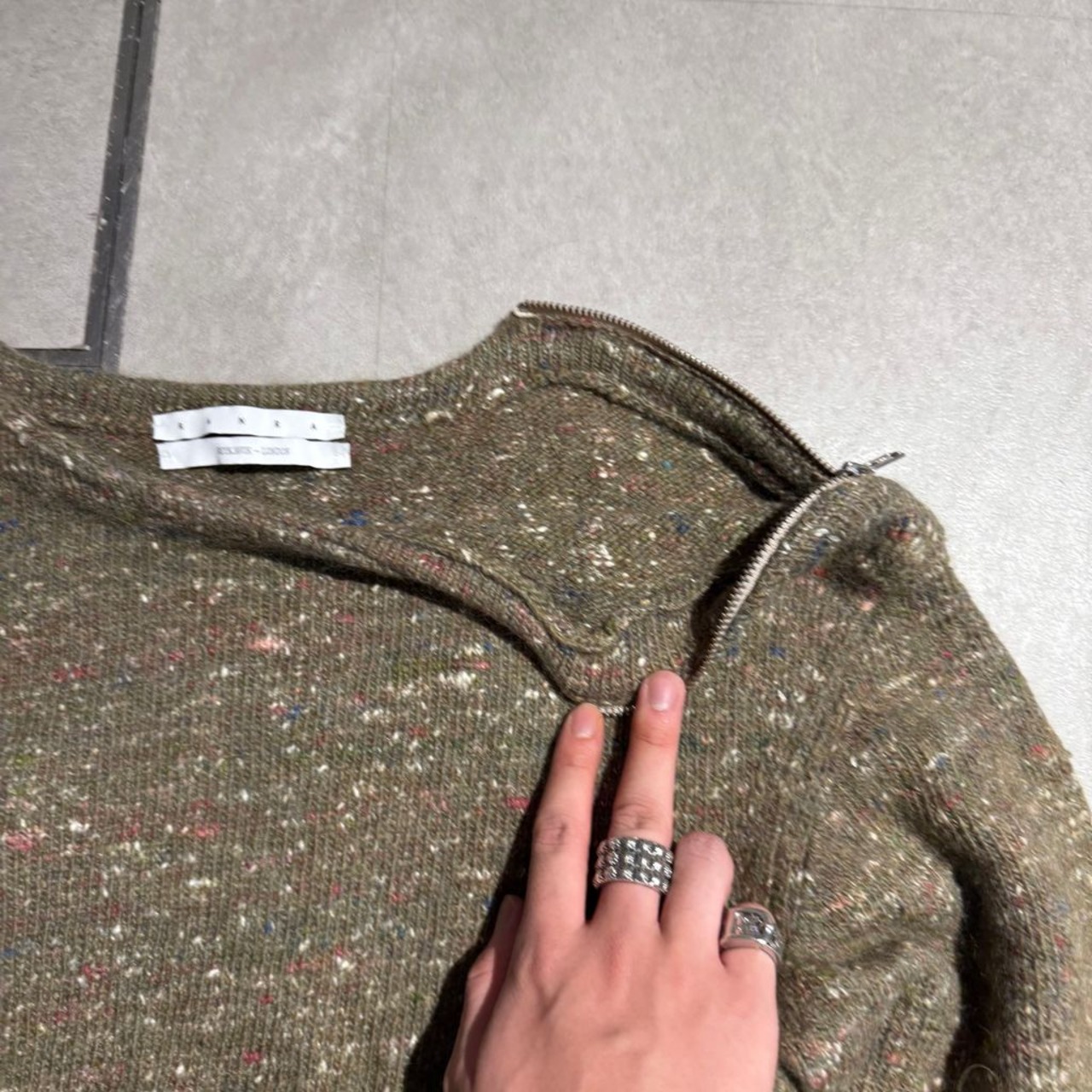 RANRA ランラ 22AW Shoulder Zip Knit ニット セーター マルチカラー カーキ系 size:M【表参道A07】