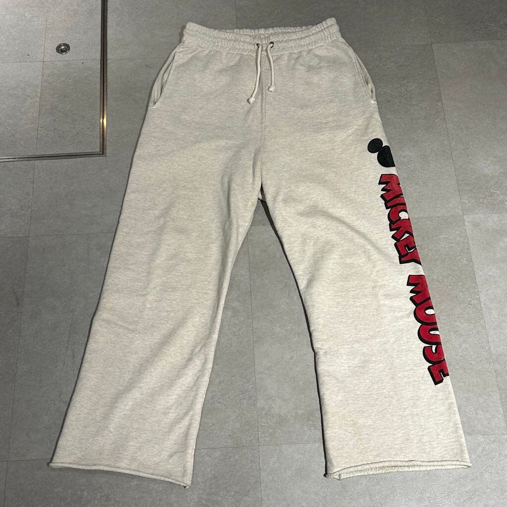 ミッキーマウスのプリントが特徴のスウェットパンツになります。