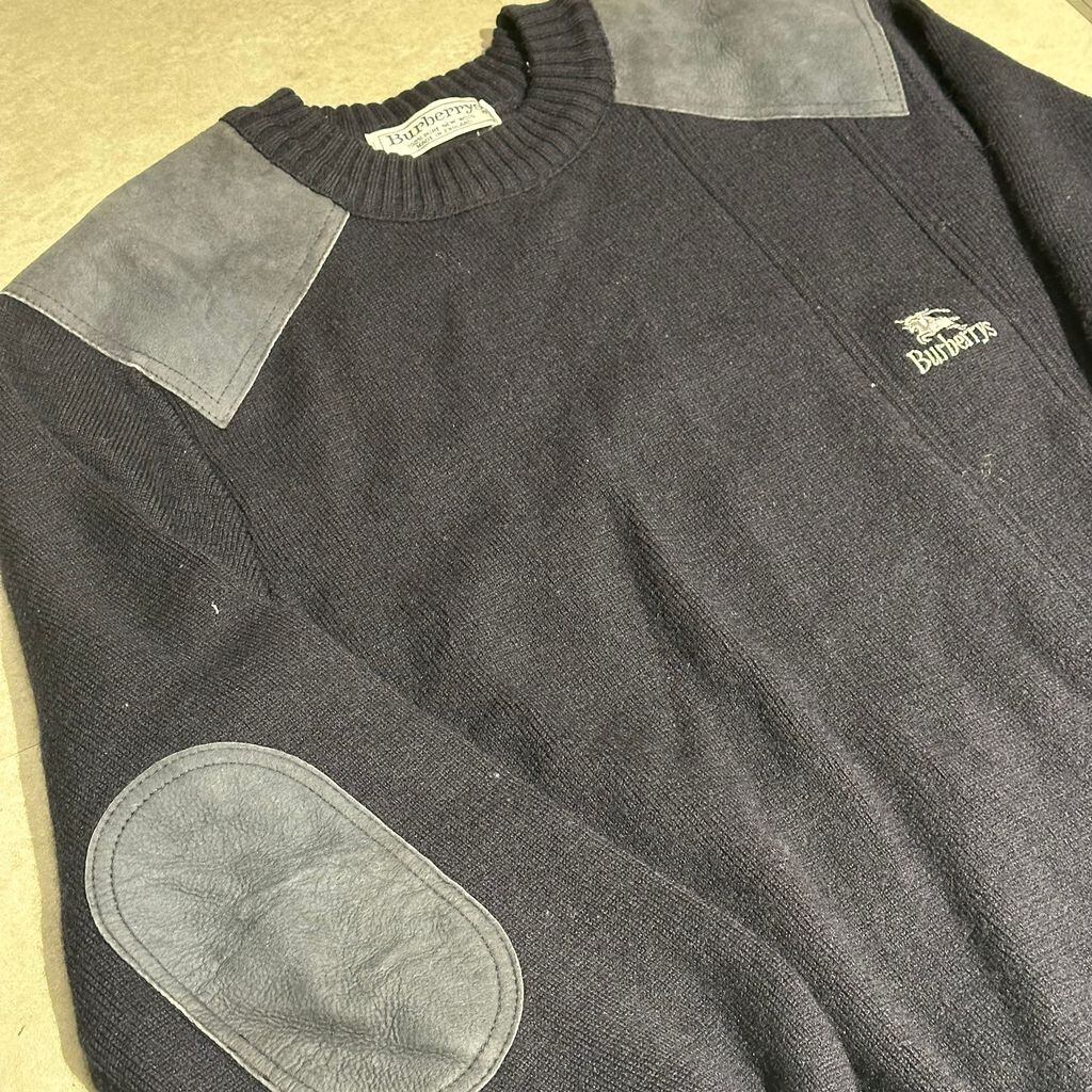 Burberrys バーバリー 90’s Leather Patch Sweater セーター ネイビーsize:L【表参道A07】