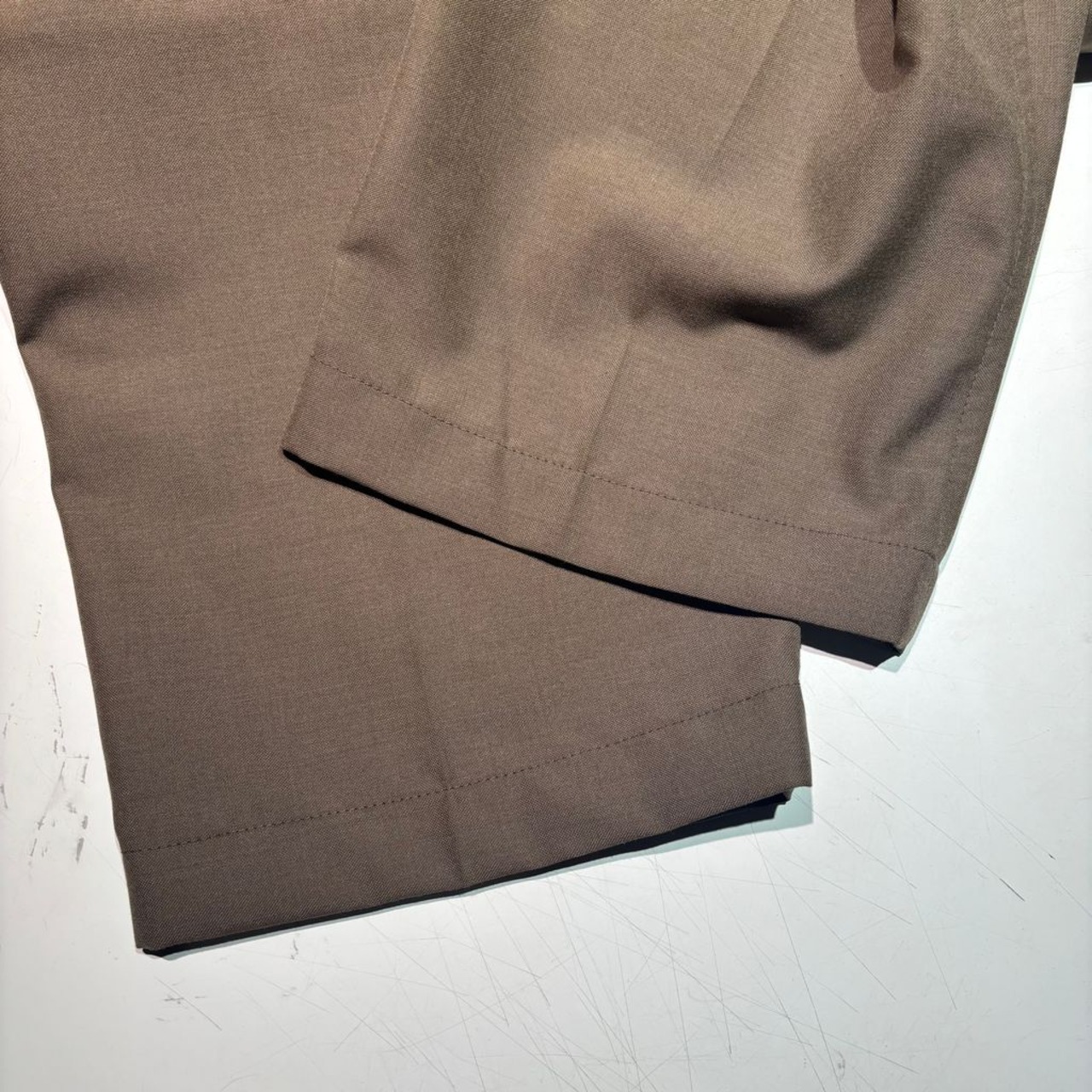 ややゆとりのあるシルエットながらも、全体的に上品さを感じるスラックスパンツです。