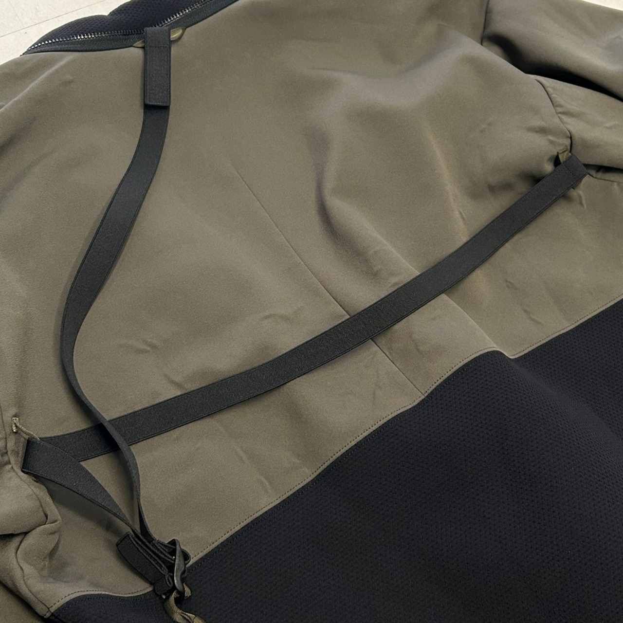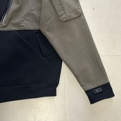 ソフトシェルのキモノとスウェットシャツとカーディガンのハイブリッドジャケットになります。様々なギミックが施されており、着まわしやすいアイテムです。
