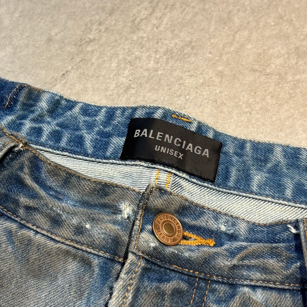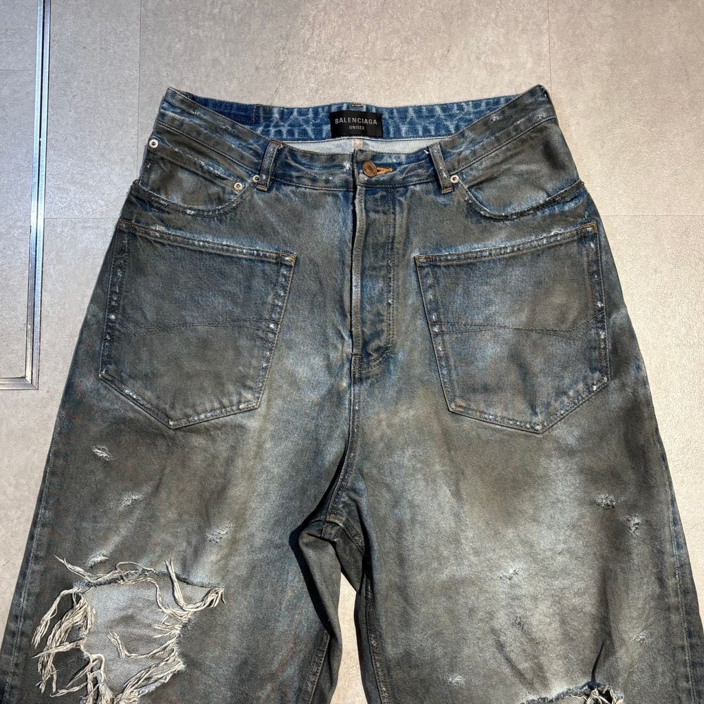 BALENCIAGA バレンシアガ 23AW PATCHED POCKET BAGGY JEANS ダメージデニムパンツ 751111 ブルー/ブラウン size:S【表参道A08】