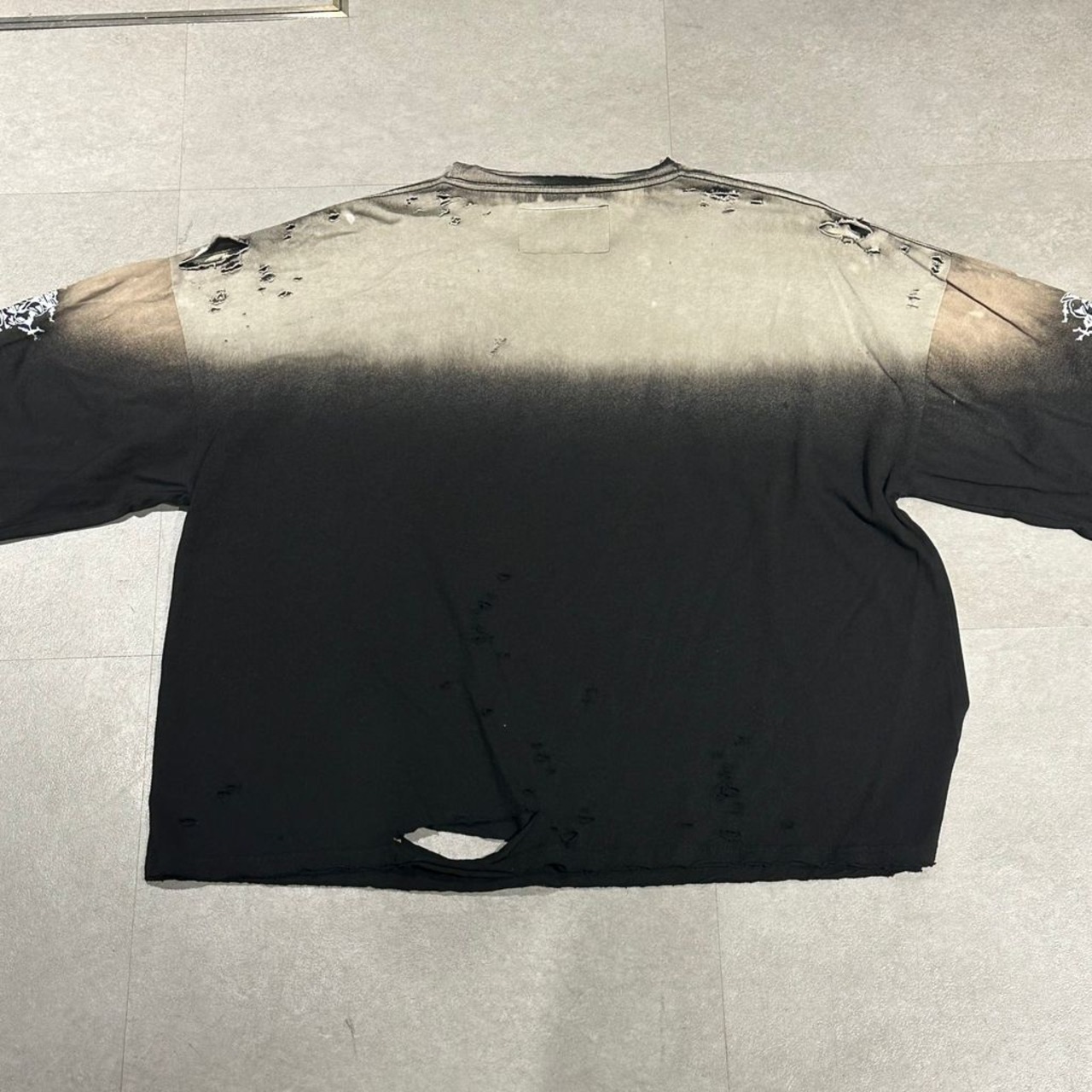 TEPPEI FURUYAMA テッペイフルヤマ 25SS Skull&Flower LS Tee ダメージ加工 長袖Tシャツ ブラック系 size:2【表参道A08】