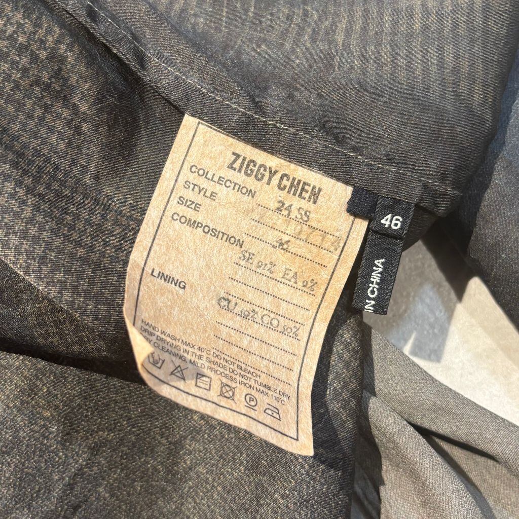 ZIGGY CHEN ジギーチェン 24SS Classic Collar Shirt 長袖 シルクシャツ 0M2410714 オリーブ系 size:46【表参道A08】