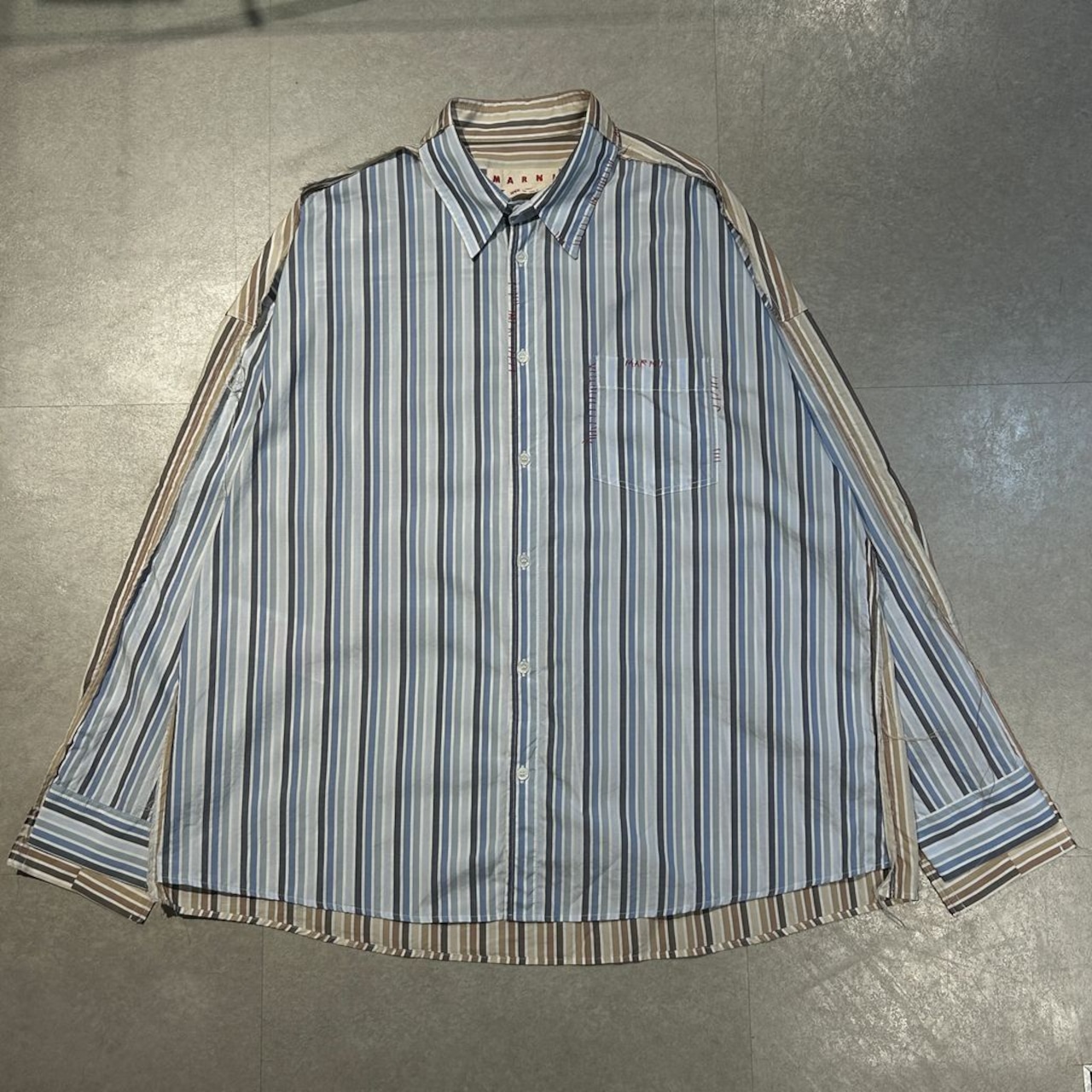 MARNI マルニ 24AW Multi Stripe Shirt ストライプシャツ CUMU0278QSUTC393 ブルー系 size:48【表参道A08】