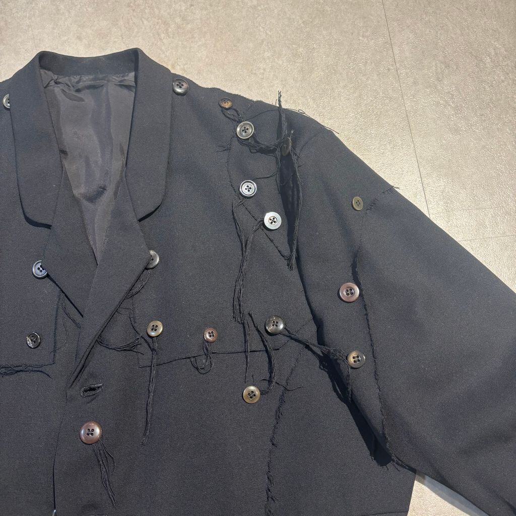 無数の散りばめられたボタンやつぎはぎのデザインが施されたアイテムです。