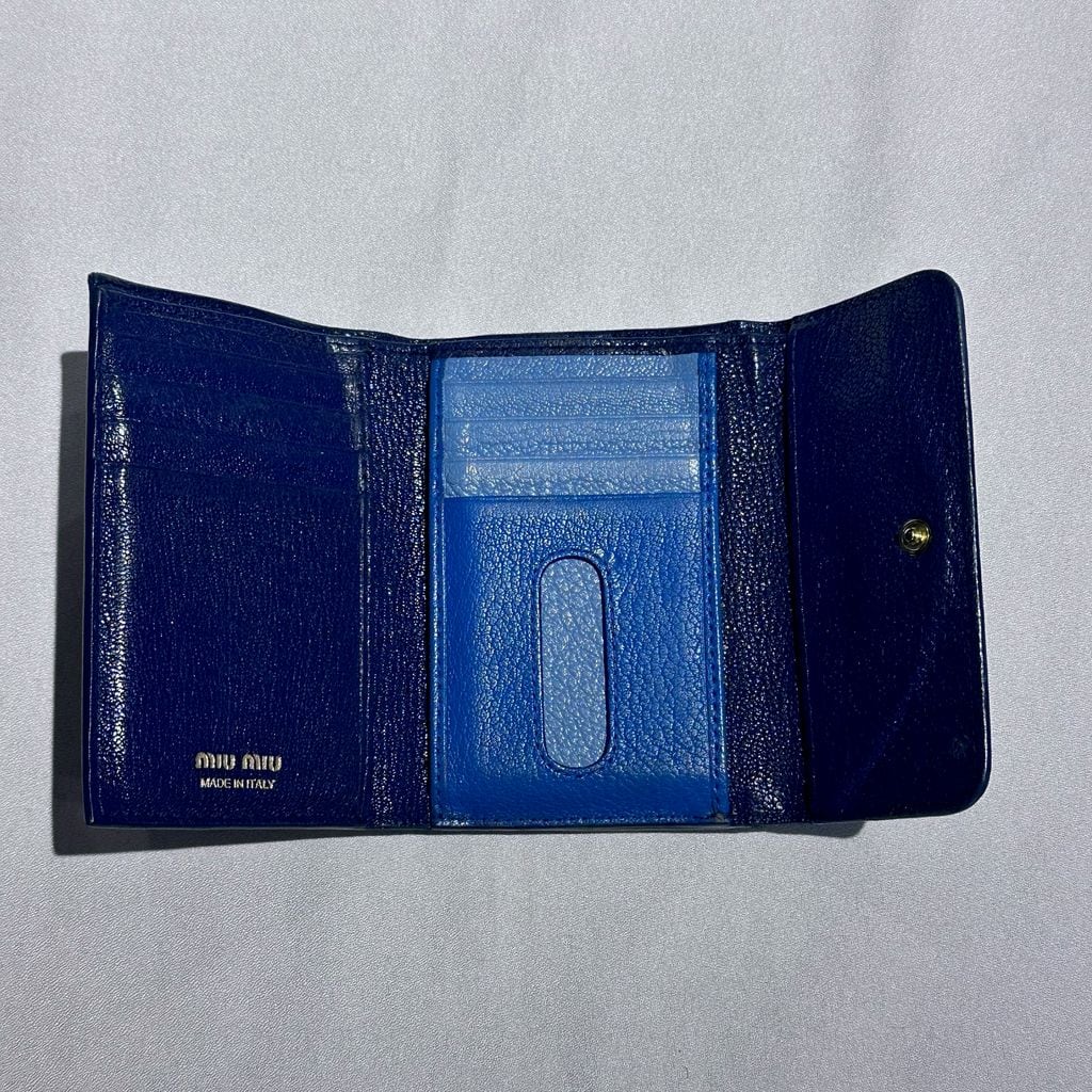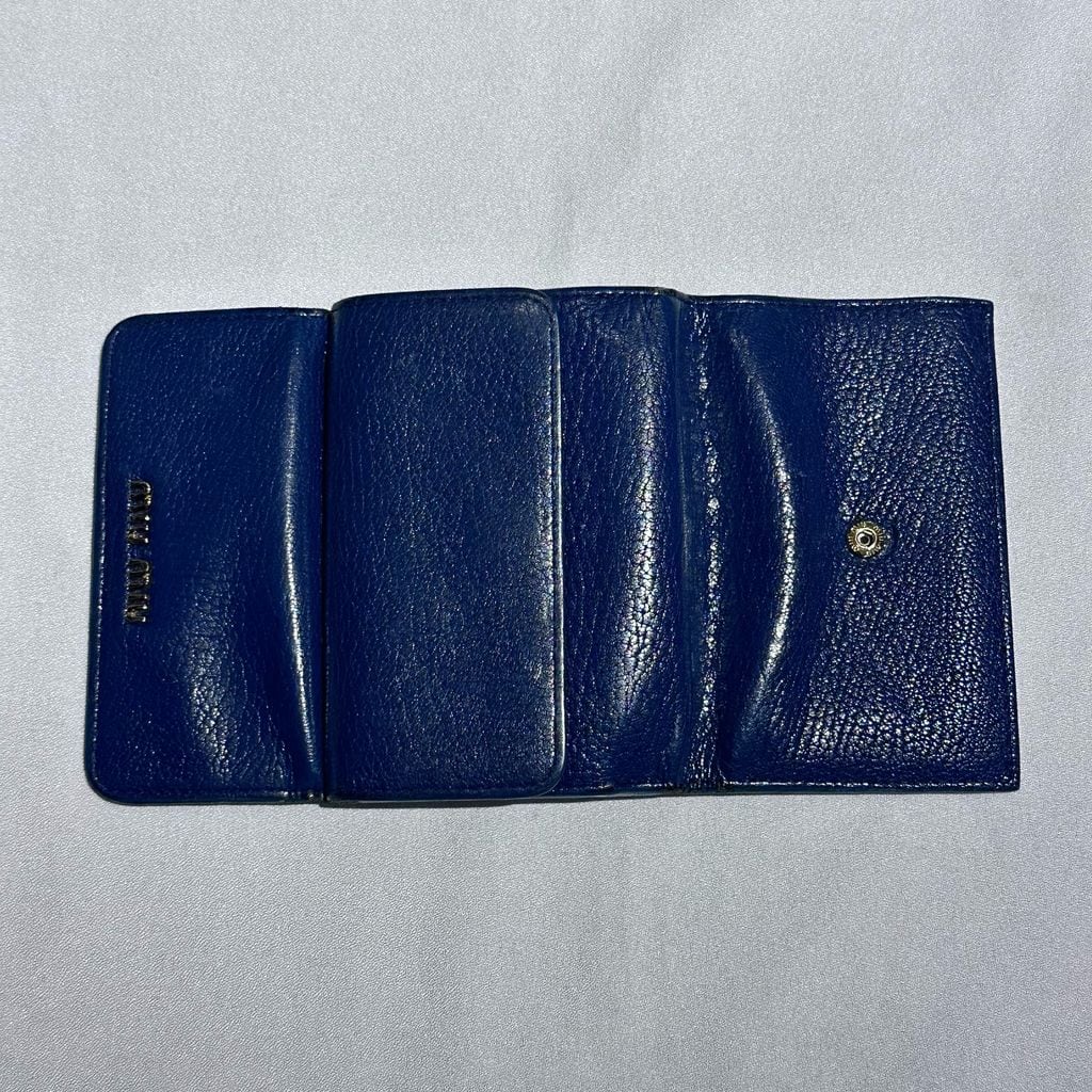 miu miu ミュウミュウ LEATHER WALLET 三つ折り財布 ネイビー 【代官山A08】
