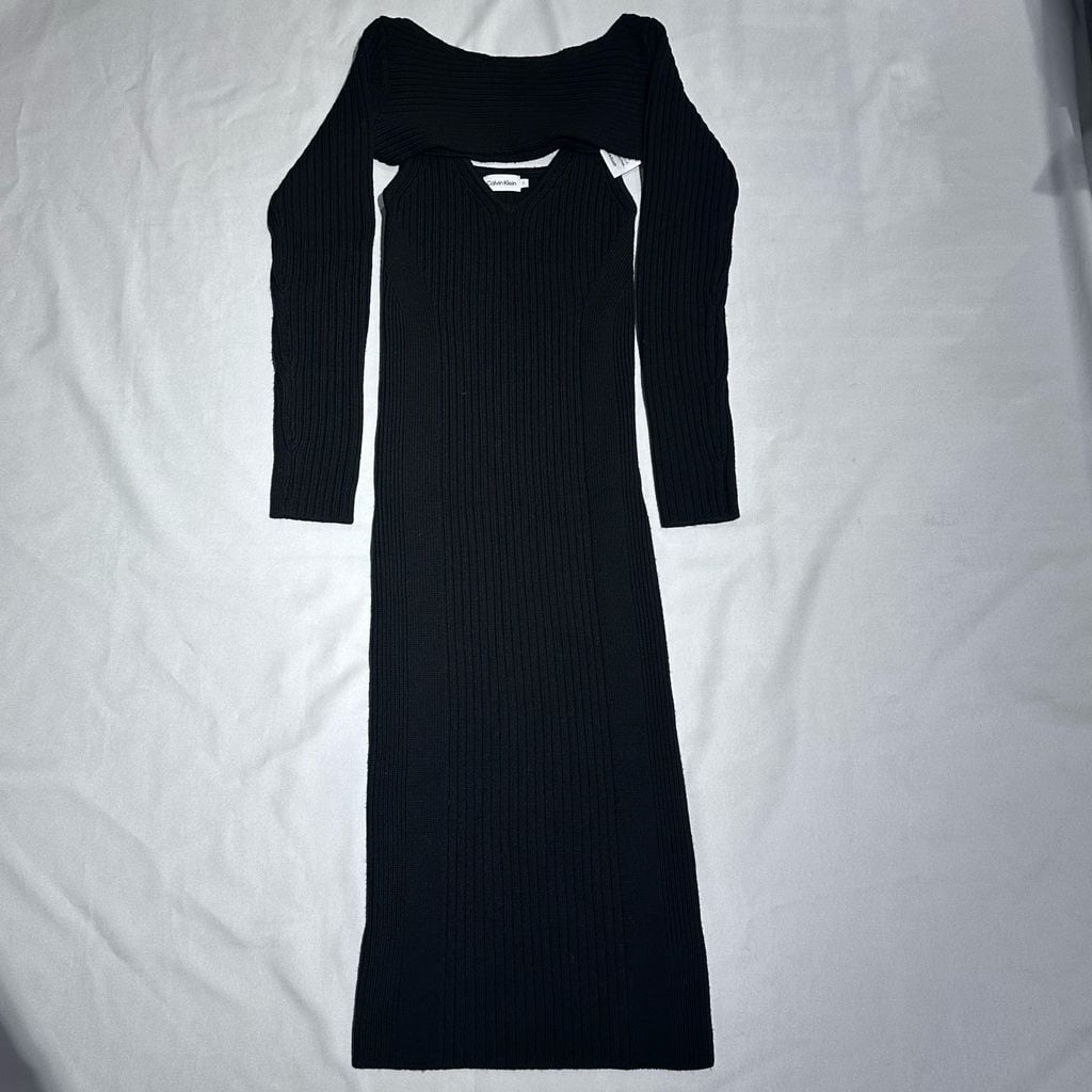 CALVIN KLEIN カルバン クライン Knit Dress ニットワンピース S007-0004 ブラック size:S【代官山A08】