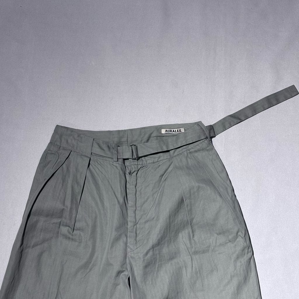 AURALEE オーラリー Washed Finx Herringbone Belted Pants ワイドパンツ A22SPO6FH グリーン系 size:0【代官山A09】 | ブランド古着Brooch