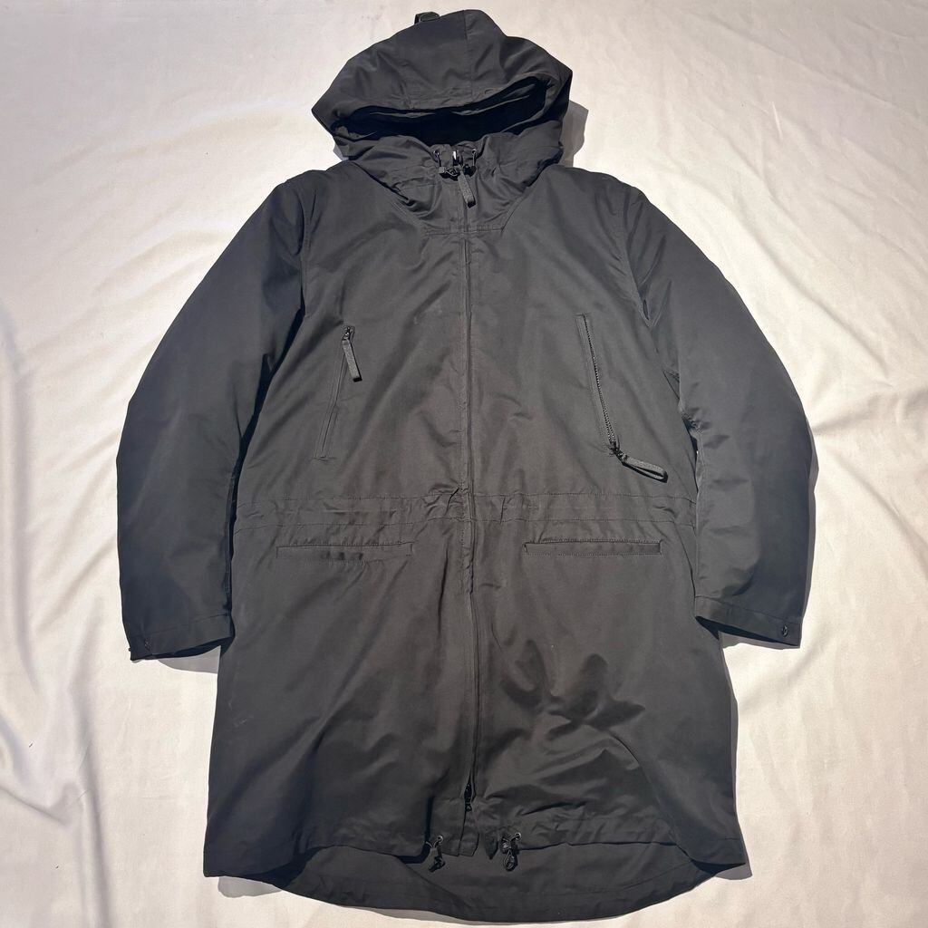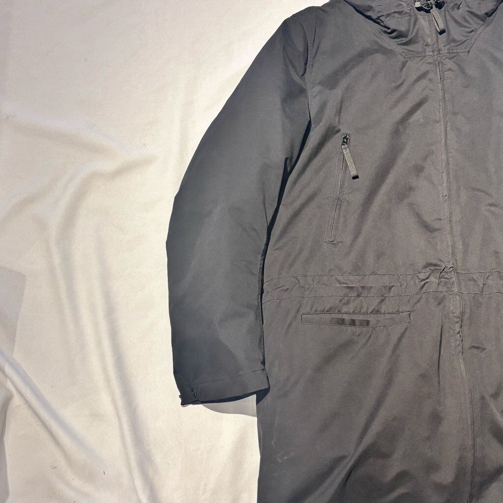 ロング丈のダウンジャケットです。内綿が取り外し可能のため、ライトジャケットとしてもご使用いただけます。