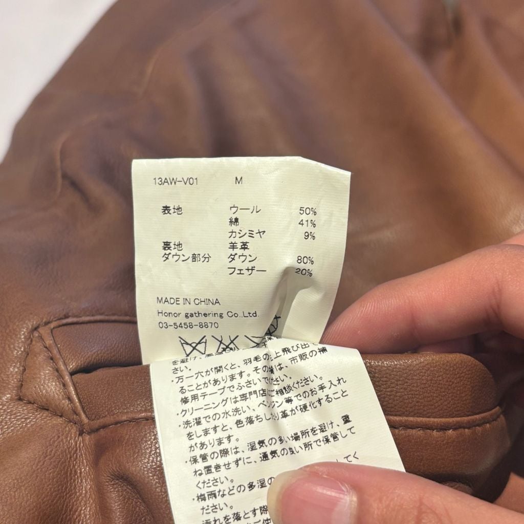 Honor gathering オナーギャザリング 13AW wool tweed × lamb skin down vest ダウンベスト 13AW-V01 ブラウン系 size:M【代官山A09】