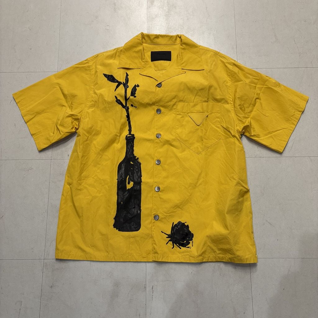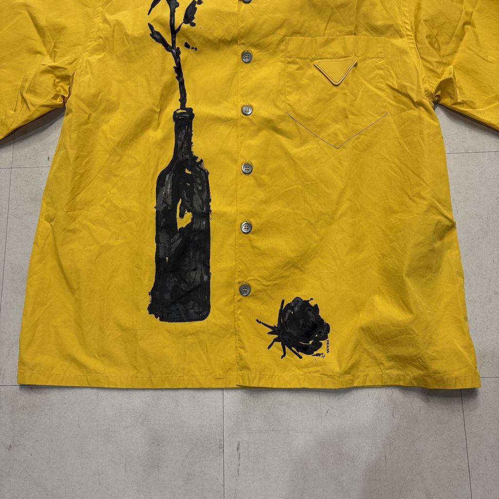PRADA プラダ 22SS Triangle logo bottle print cotton shirt 半袖シャツ ACU120223197 イエロー系 size:L【中目黒A09】