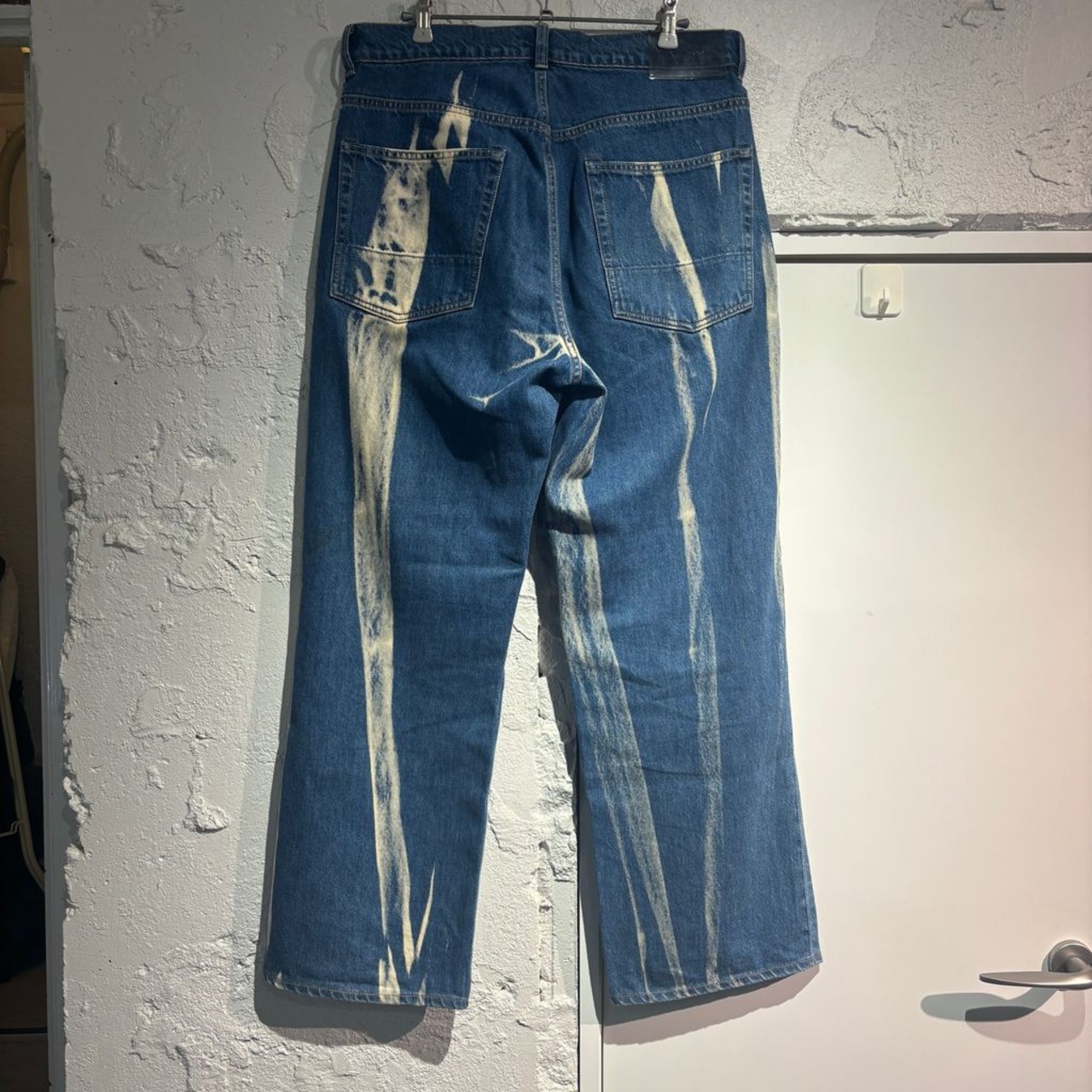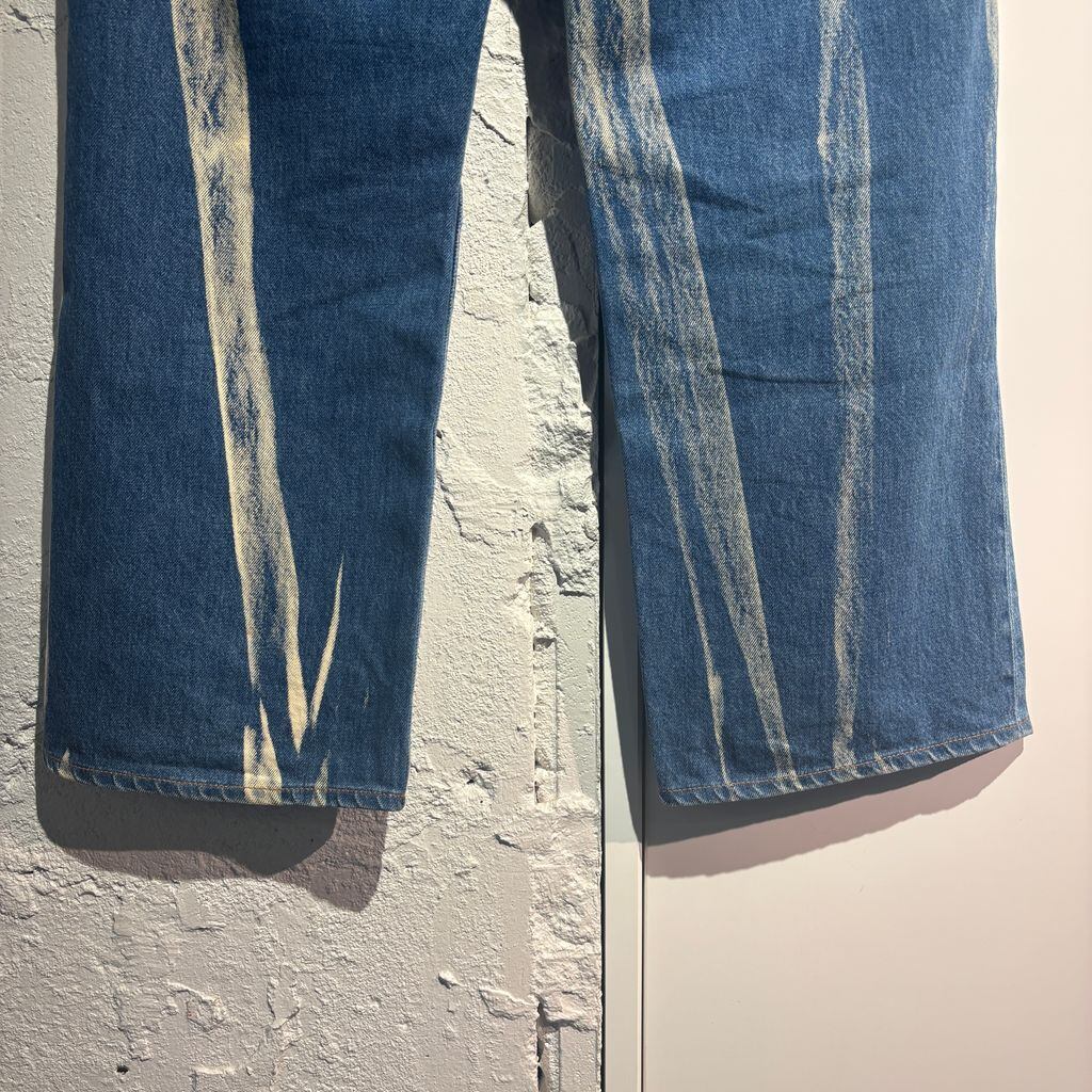 ブリーチ加工が施されたワイドデニムです。