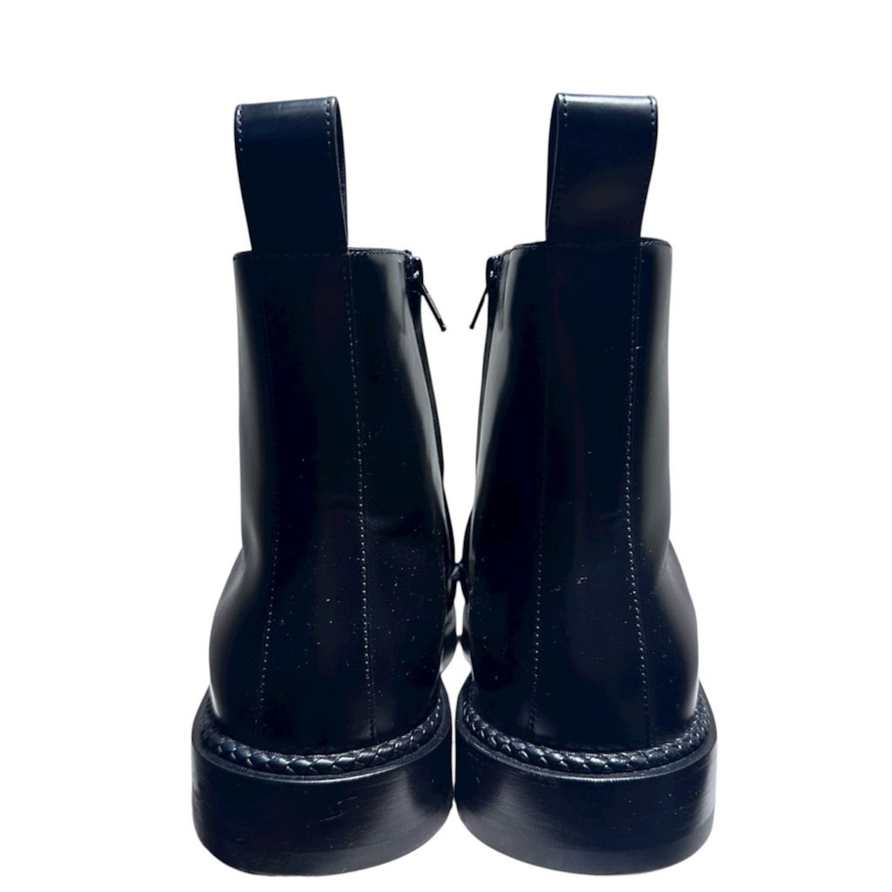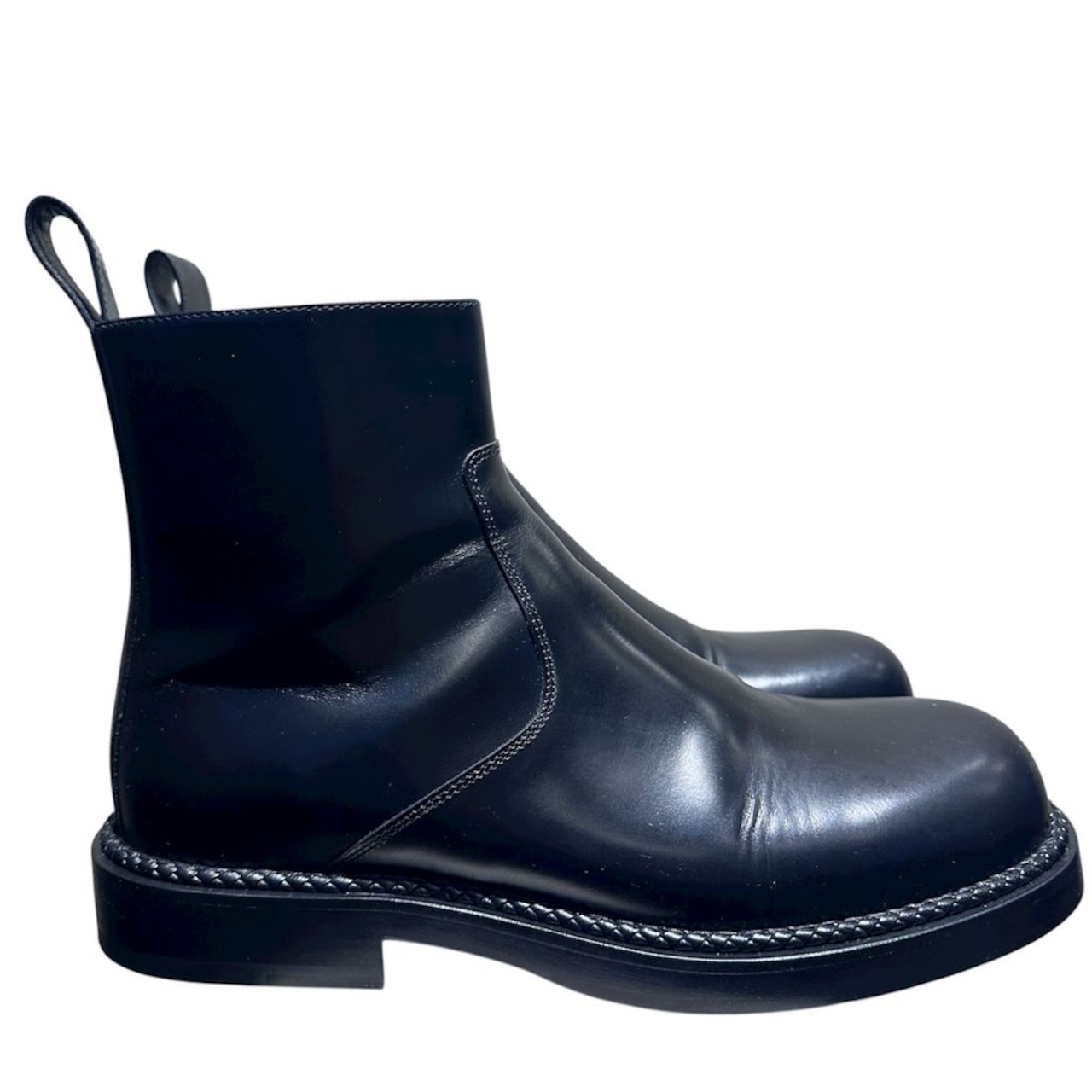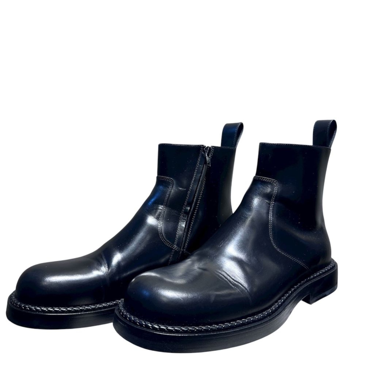 BOTTEGA VENETA ボッテガヴェネタ BLACK LEATHER STRUT ANKLE BOOTS ブーツ ブラック size:42【代官山A10】