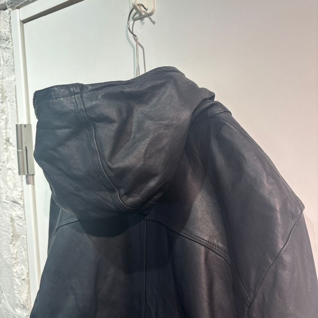 GIORGIO BRATO ジョルジオブラット Lamb Leather Hooded Jacket レザー パーカー GU20F9296V ブラック size:46【表参道A10】 | ブランド古着Brooch