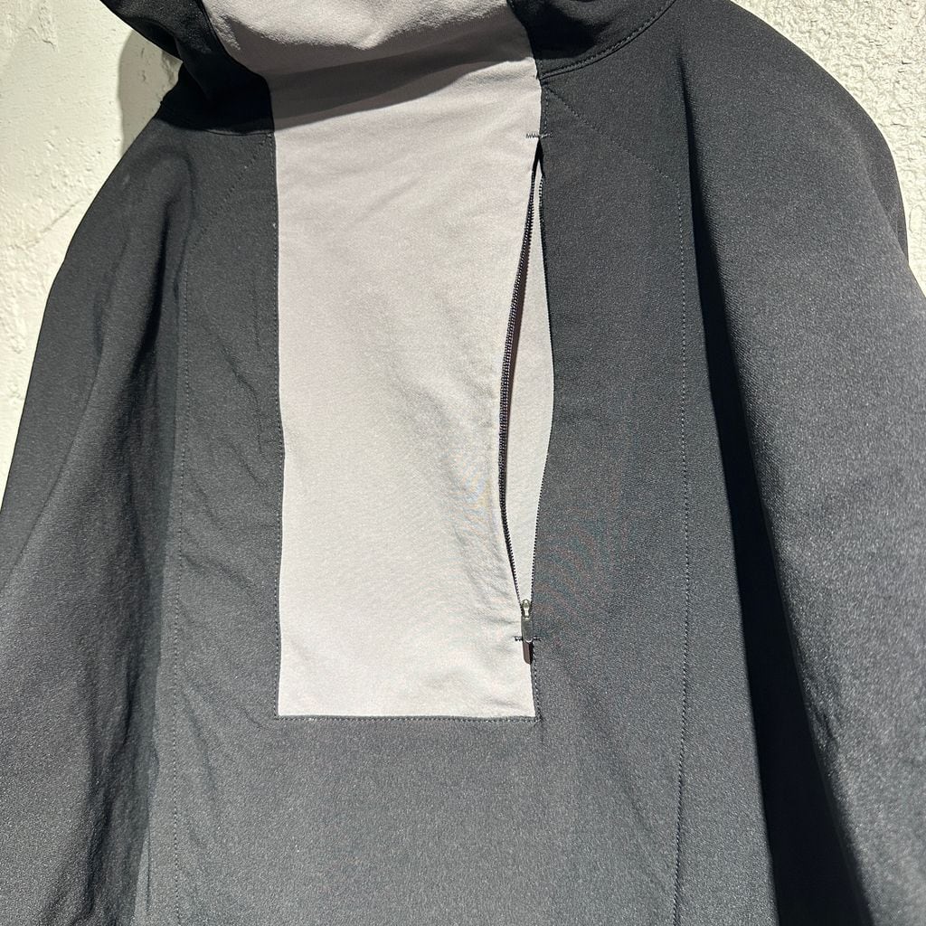 当コラボらしく、軽い素材で動きやすさもありながら、背中のジップポケットデザインや裾背面のジップなどの独特なディテールから、こだわりを感じられる一着です。