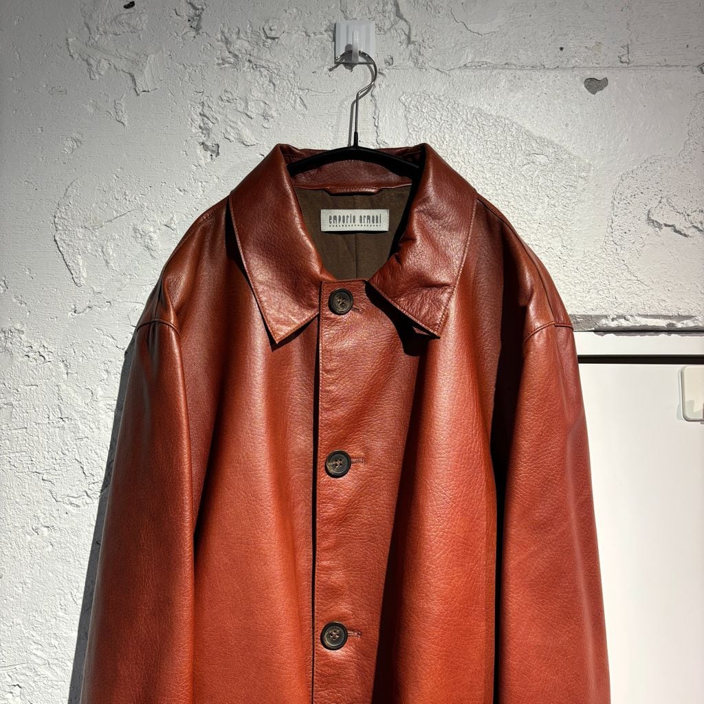 OUR LEGACY × Emporio Armani アワーレガシー エンポリオアルマーニ 25SS TORO COAT Pomodoro Seccho Leather レザー カーコート WS4239TPS ブラウン size:46【表参道A10】