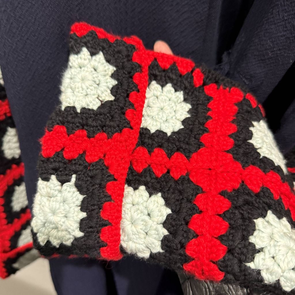 袖がニットの切替になっており、当ブランドらしい遊び心を感じる1着。